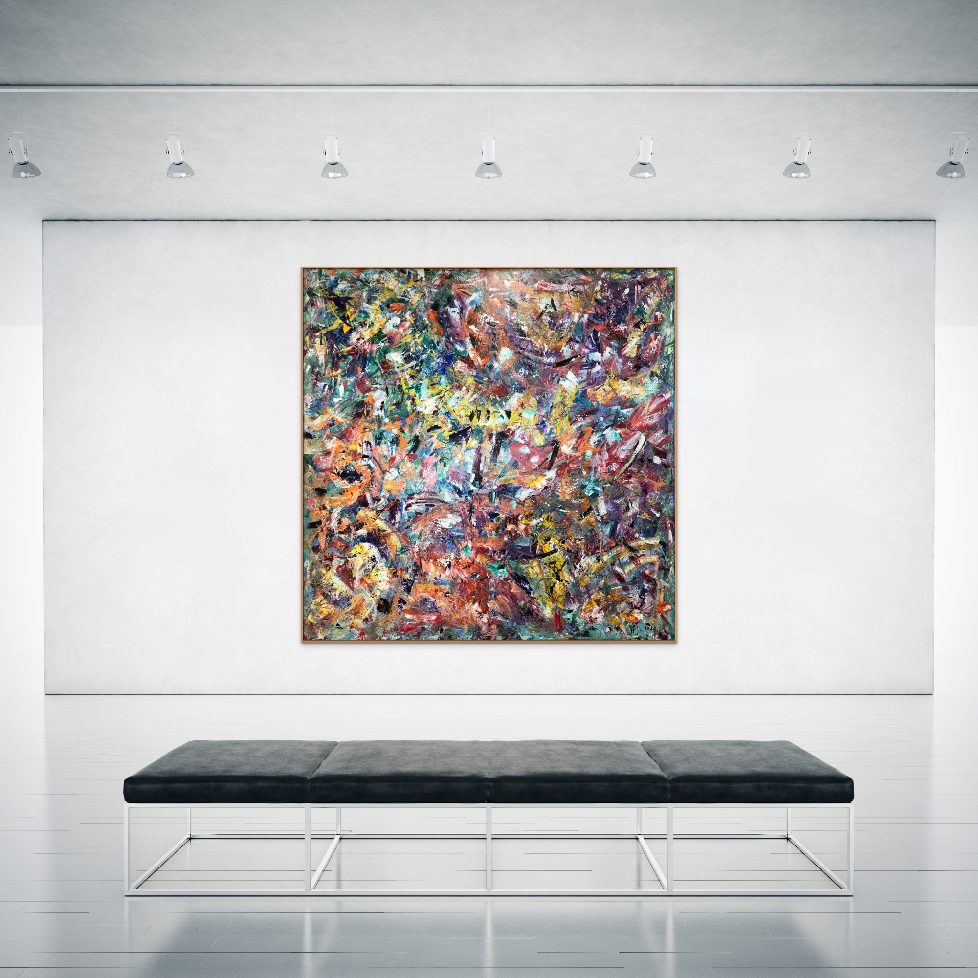 Here is my largest artwork to date, a whopping six feet by six feet, painted on a custom-made canvas, the largest that is possible to be brought in my studio and gallery without needing to assemble it on site.