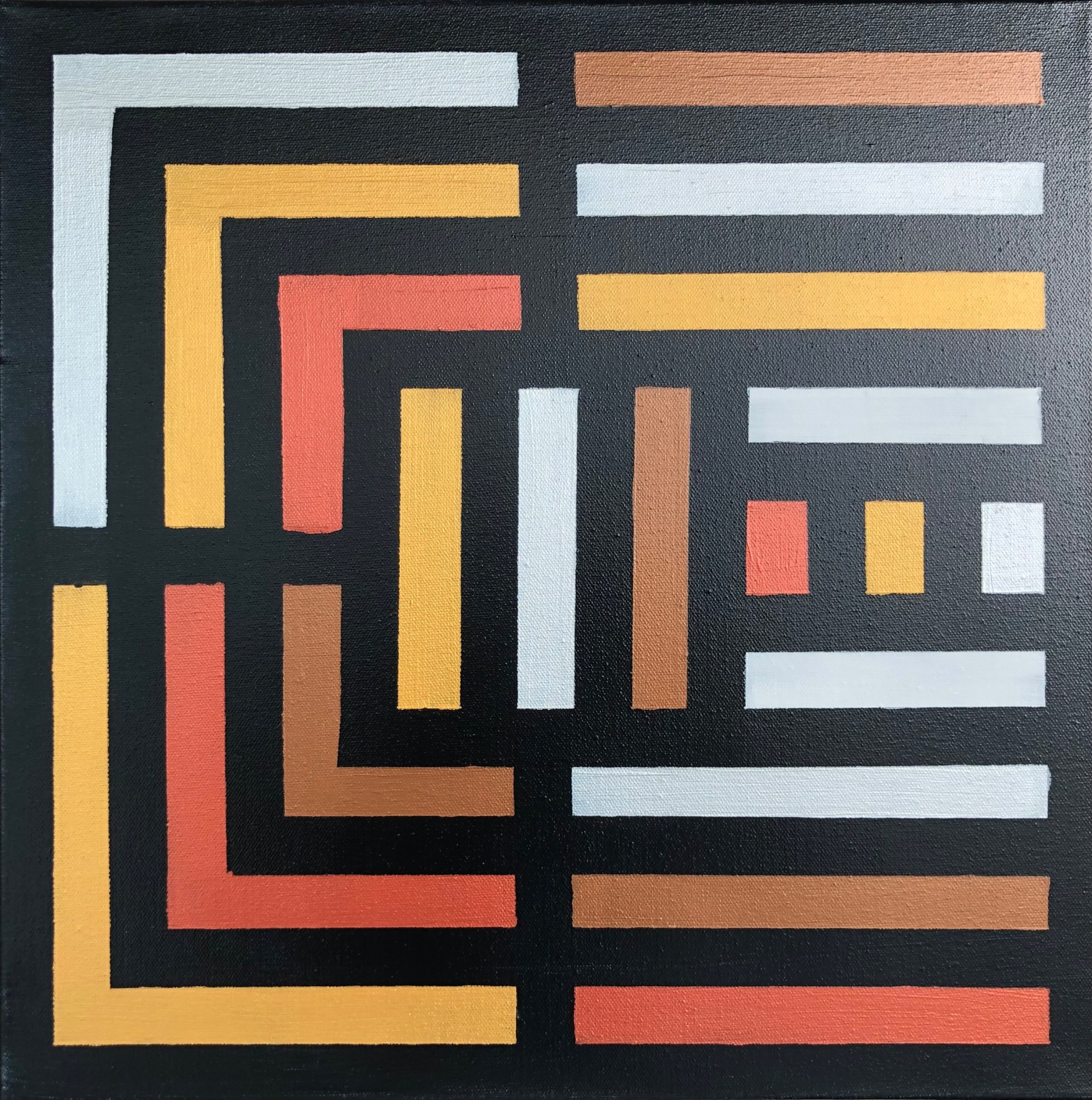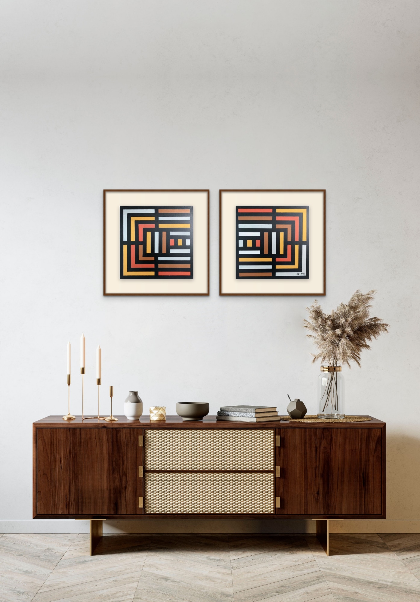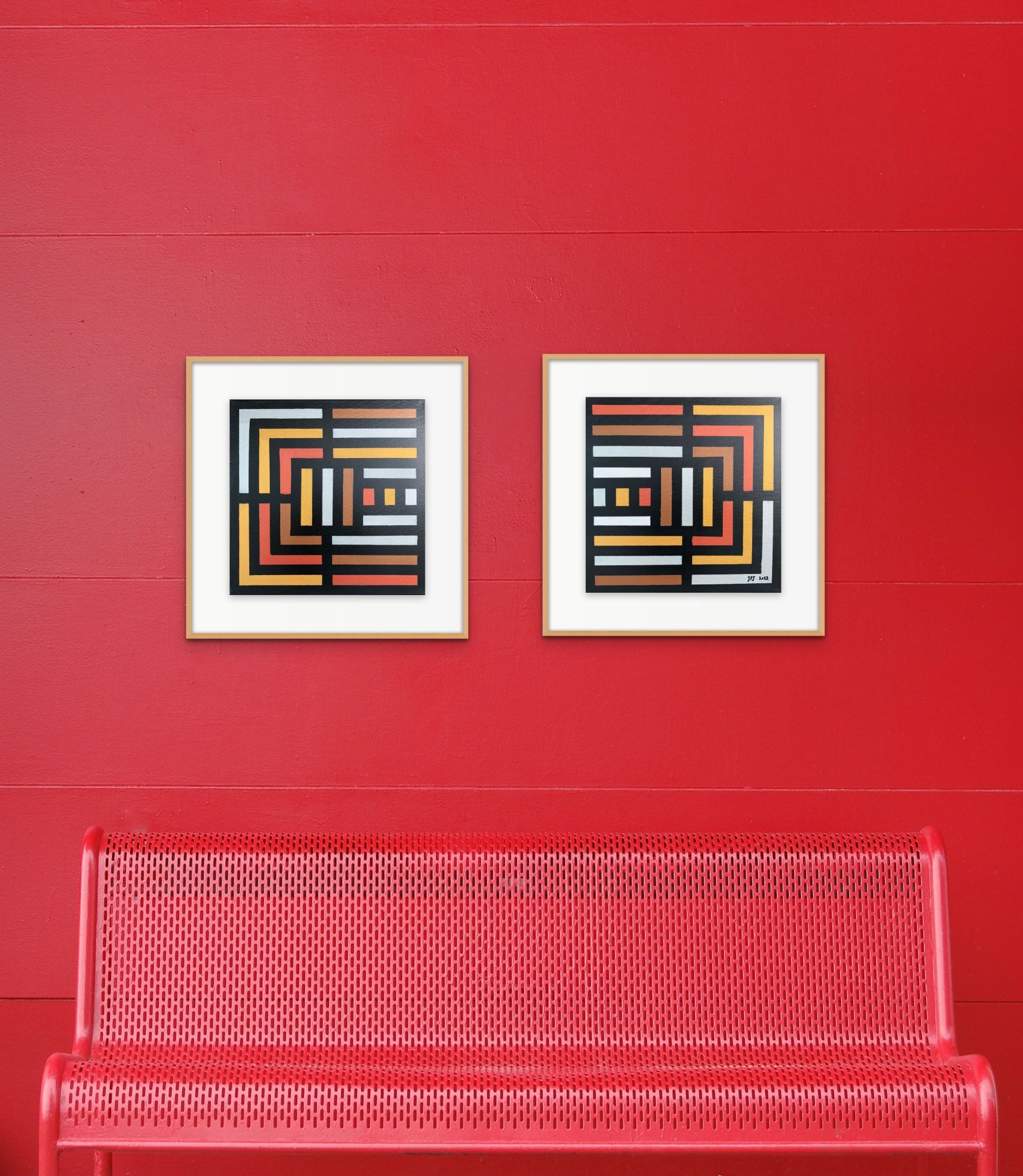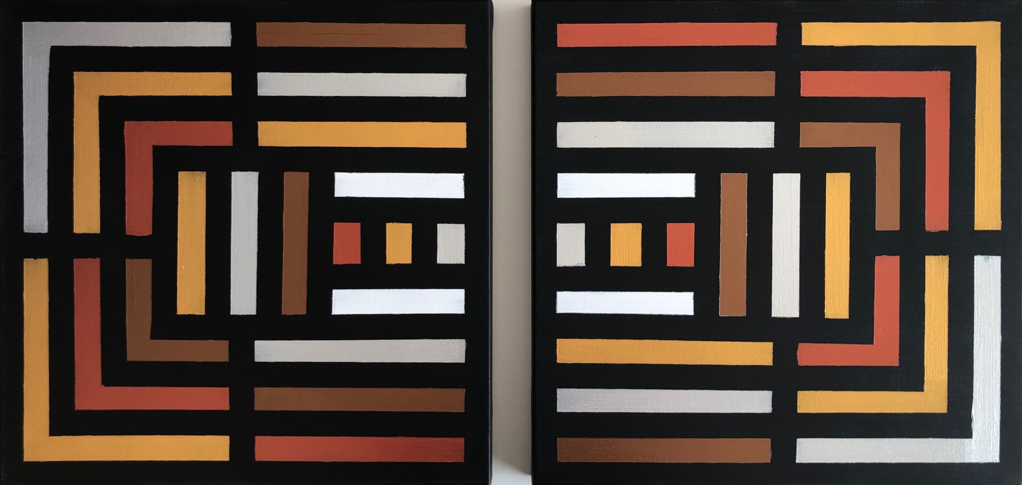 It seems this is what is meant to continue oozing out of me ~ gold, solver, bronze and copper in geometrical shapes, this time in two facing panels