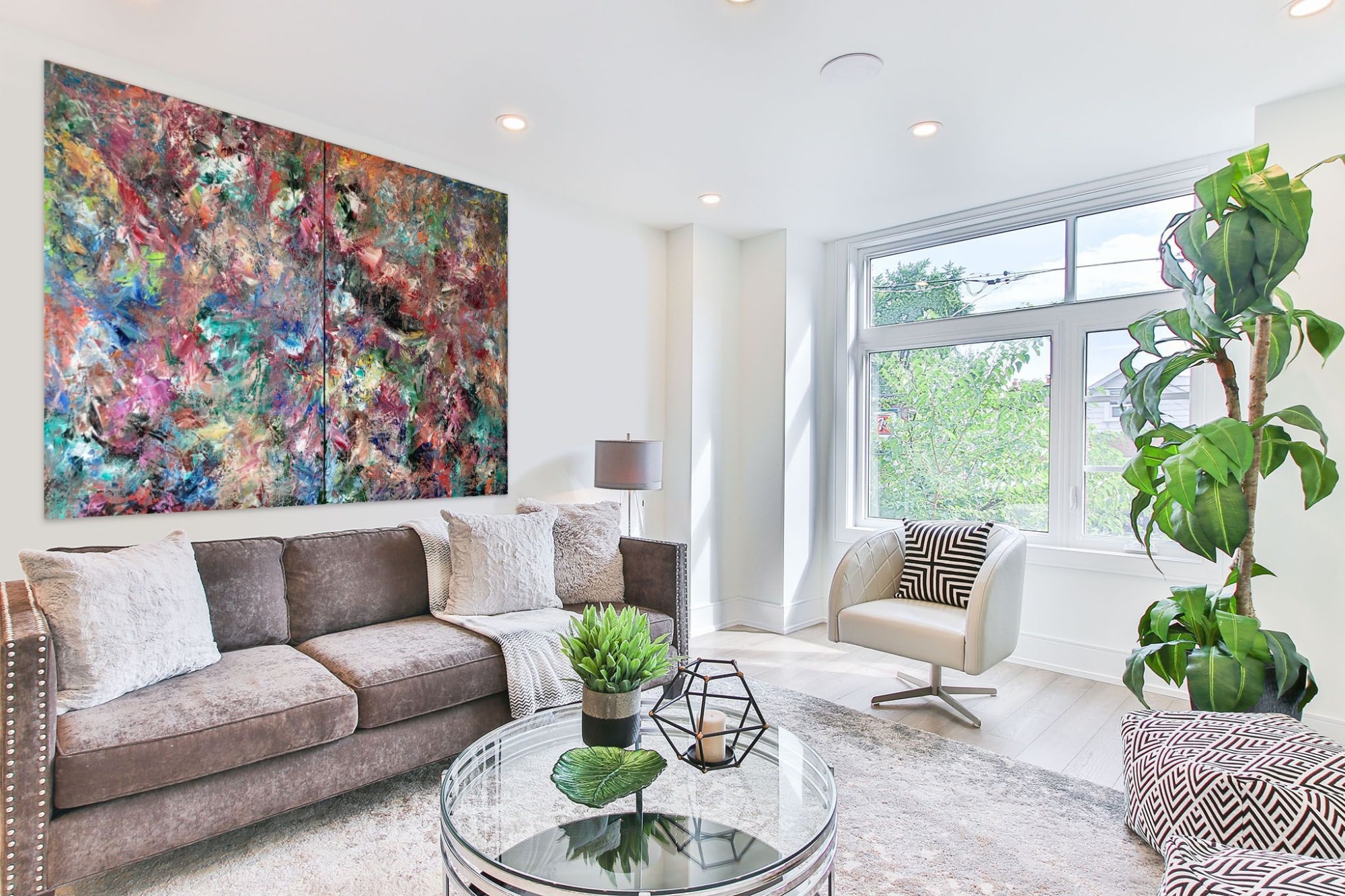 A little under seven months after my first artwork, a chance encounter with painting, this is my largest artwork to date, double the size of the earlier largest. I am fascinated by how I went from mere 7" by 9" to now 60" by 96". The sky is truly the limit!
