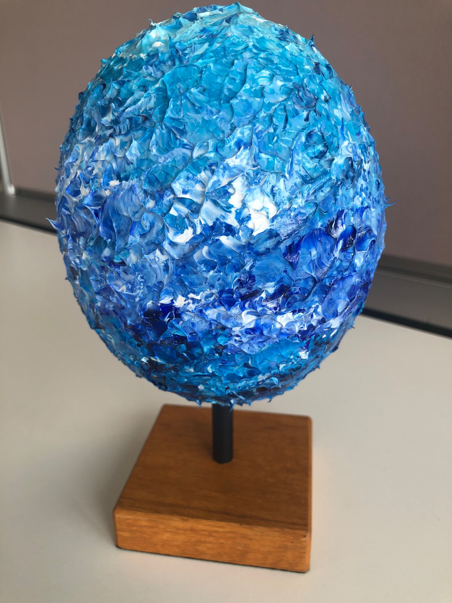 After a 2021 collection of nine 'eggs' painted on styrofoam and a 2022 collection of another nine eggs painted on Malaysian ostrich egg shells, here is our 2023 collection, back by popular demand!