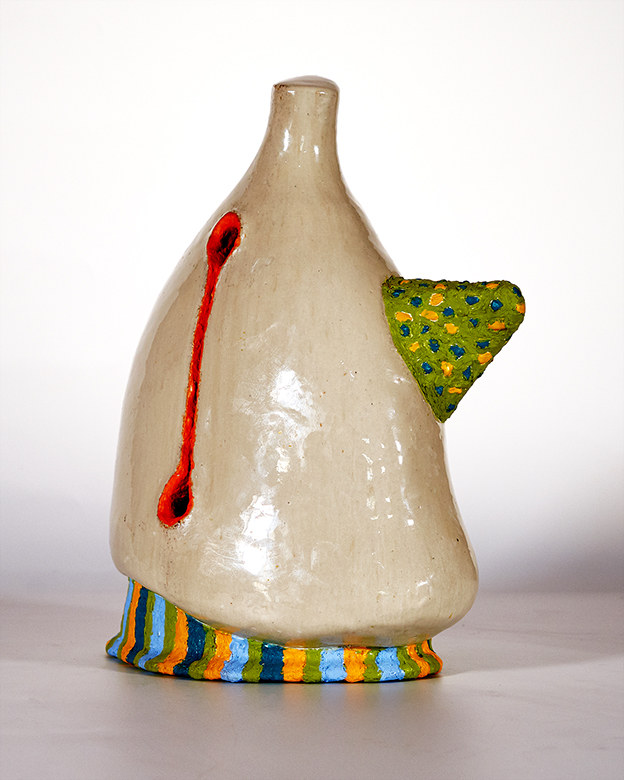 Ceramic sculpture with glaze and encaustic colors.