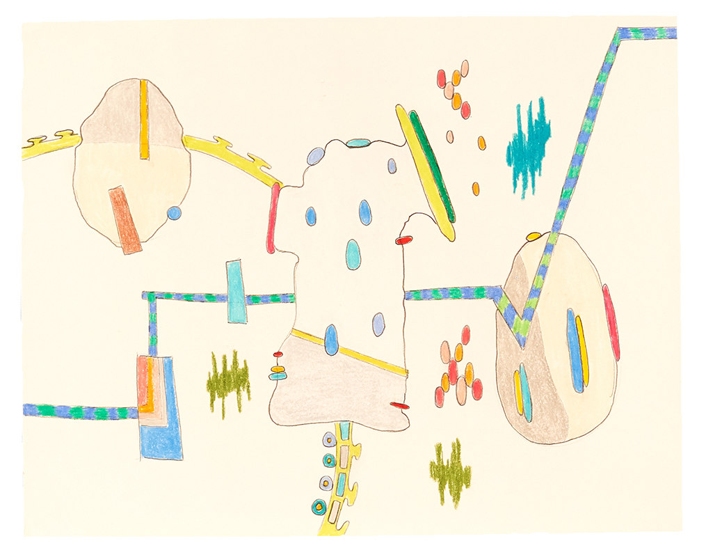Drawing with color pencils on paper.