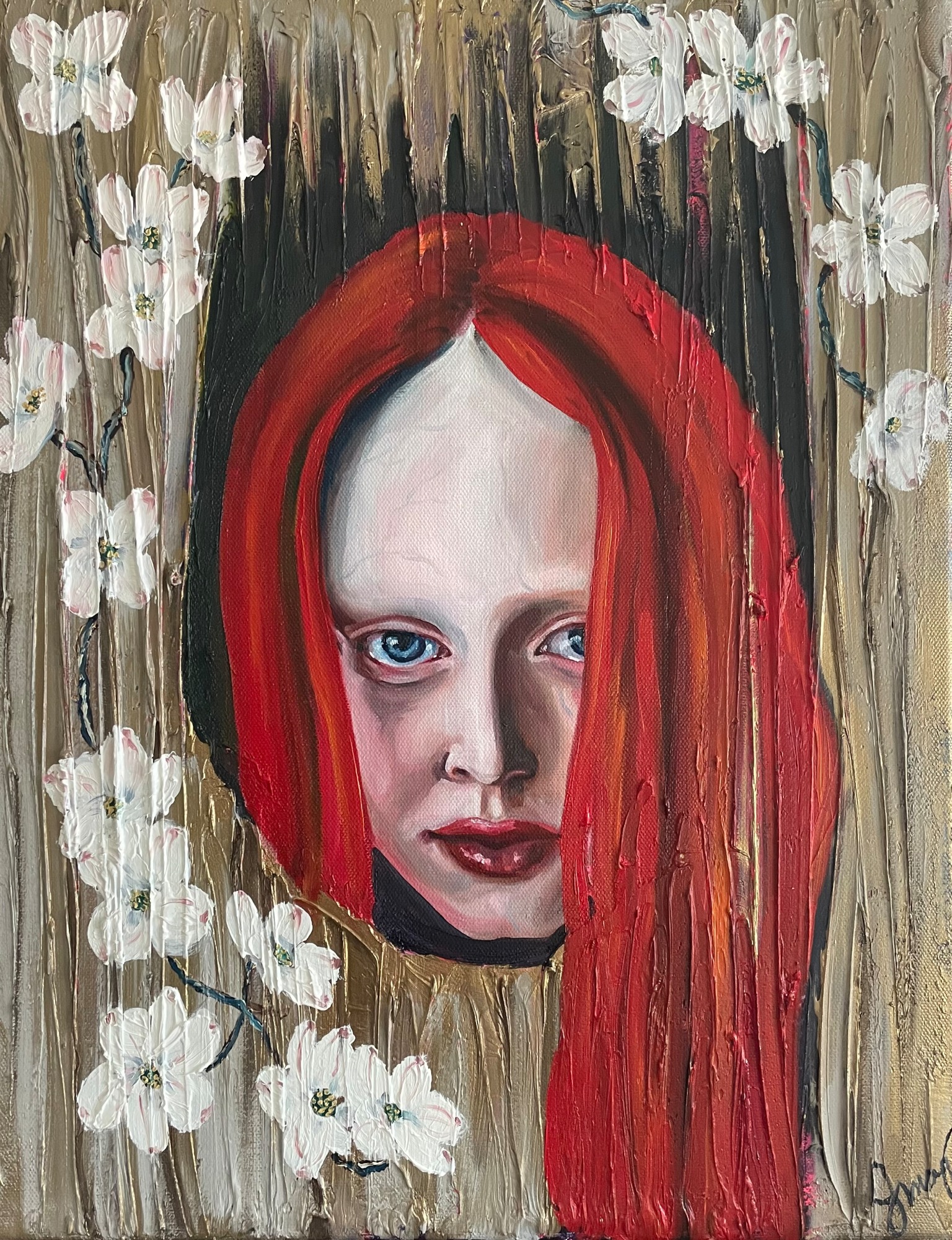 This piece is the second in my Power of Red series. It contains a base layer of acrylic texture paster and paint.