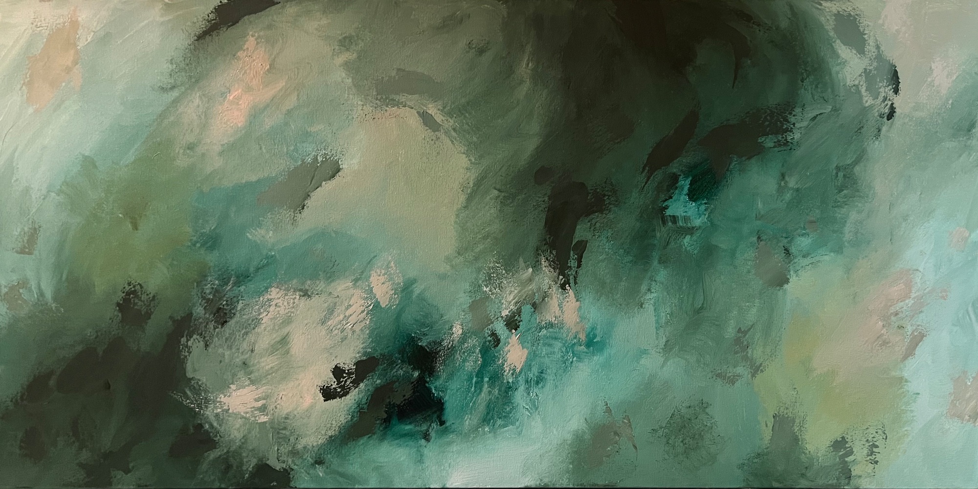 Peat moss and bogland—the liminal space between earth and water. This work was inspired by Ireland’s countryside, a landscape rich in diversity. Find solace in the muted, tranquil palette of airy soft grays, and earthy mossy greens.