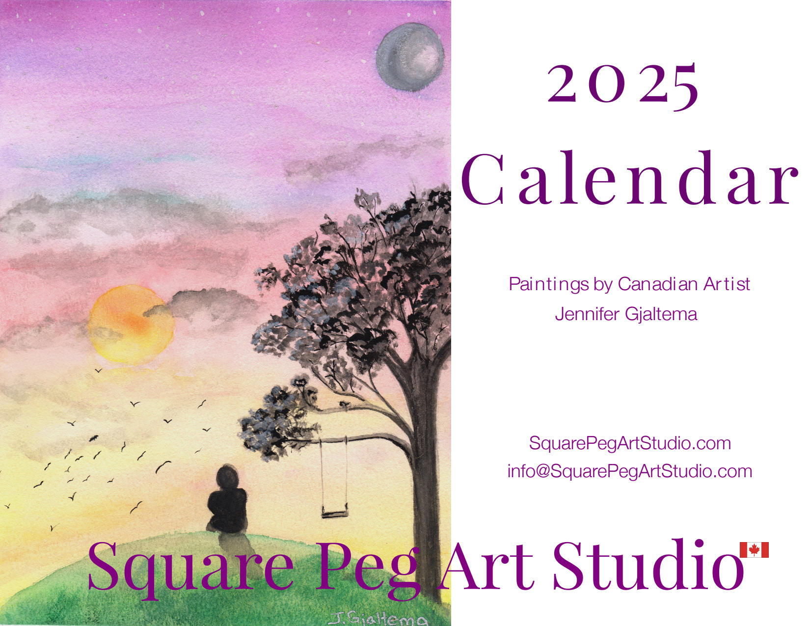 Our Custom Wall Calendar features 13 works of art created by Jennifer Gjaltema. The art used in the calendar is available for sale on Jennifers website.