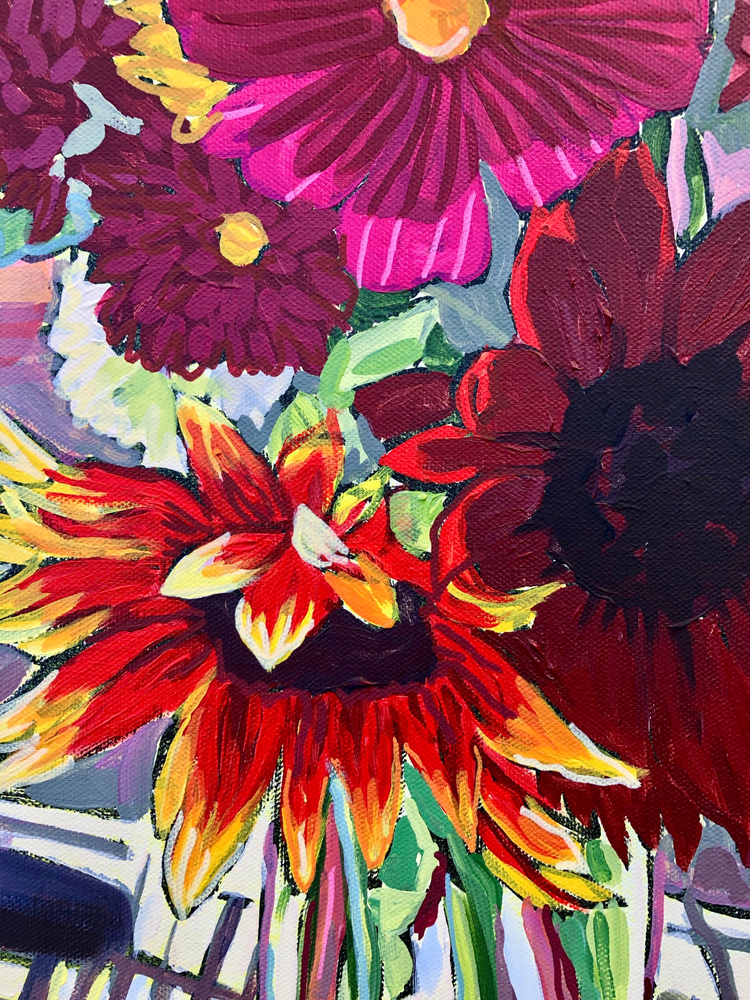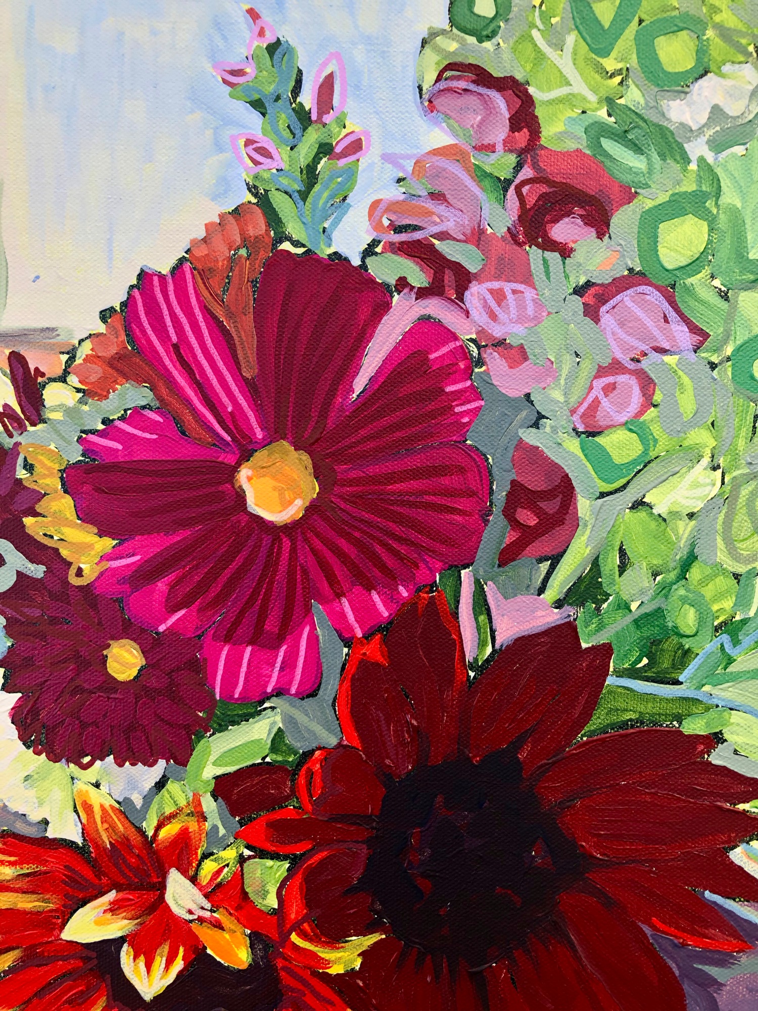 The flowers referenced for this painting were collected from local Sylvan Lake, Alberta cut flower growers, Kari Duke and Leigh Halvorson.
