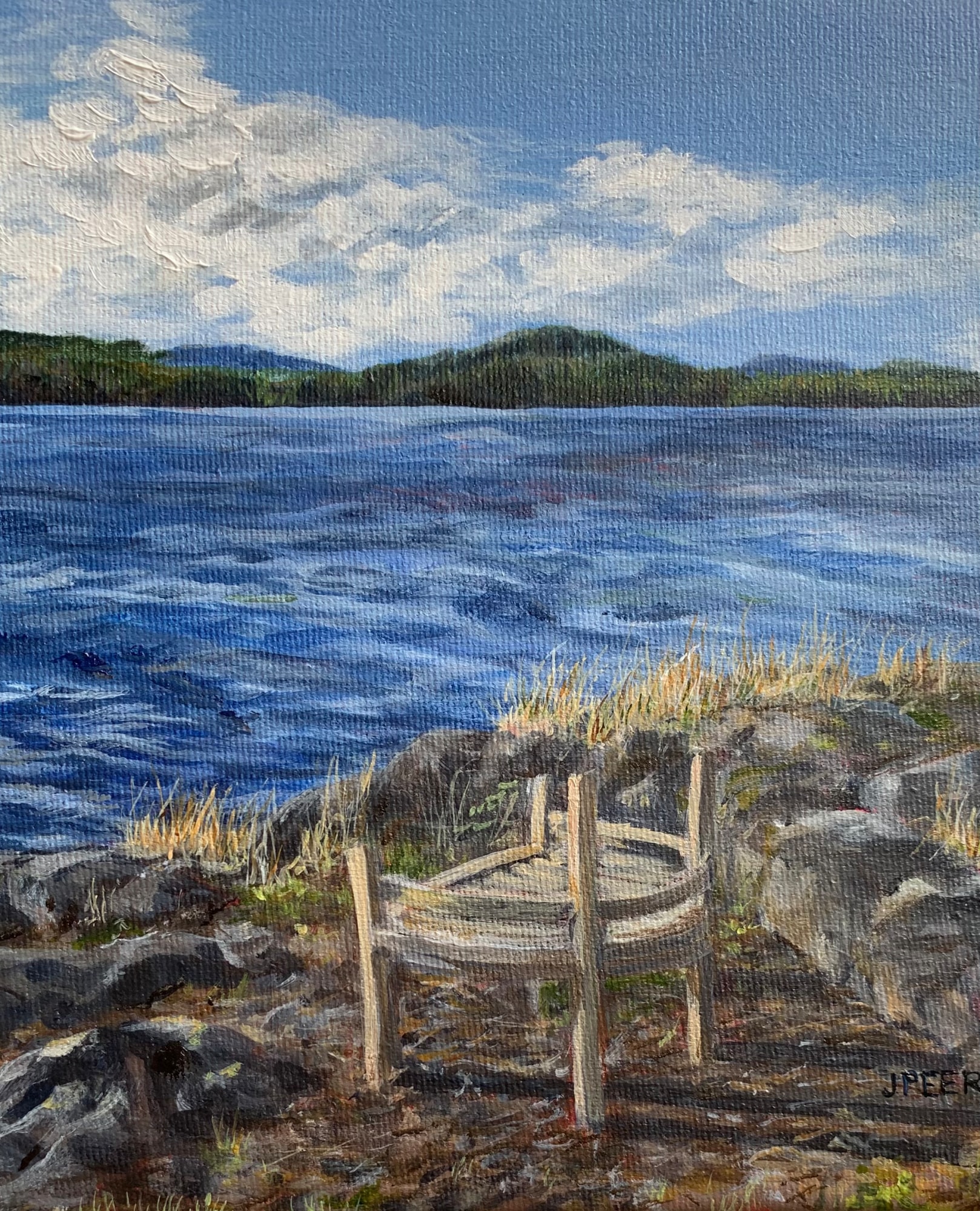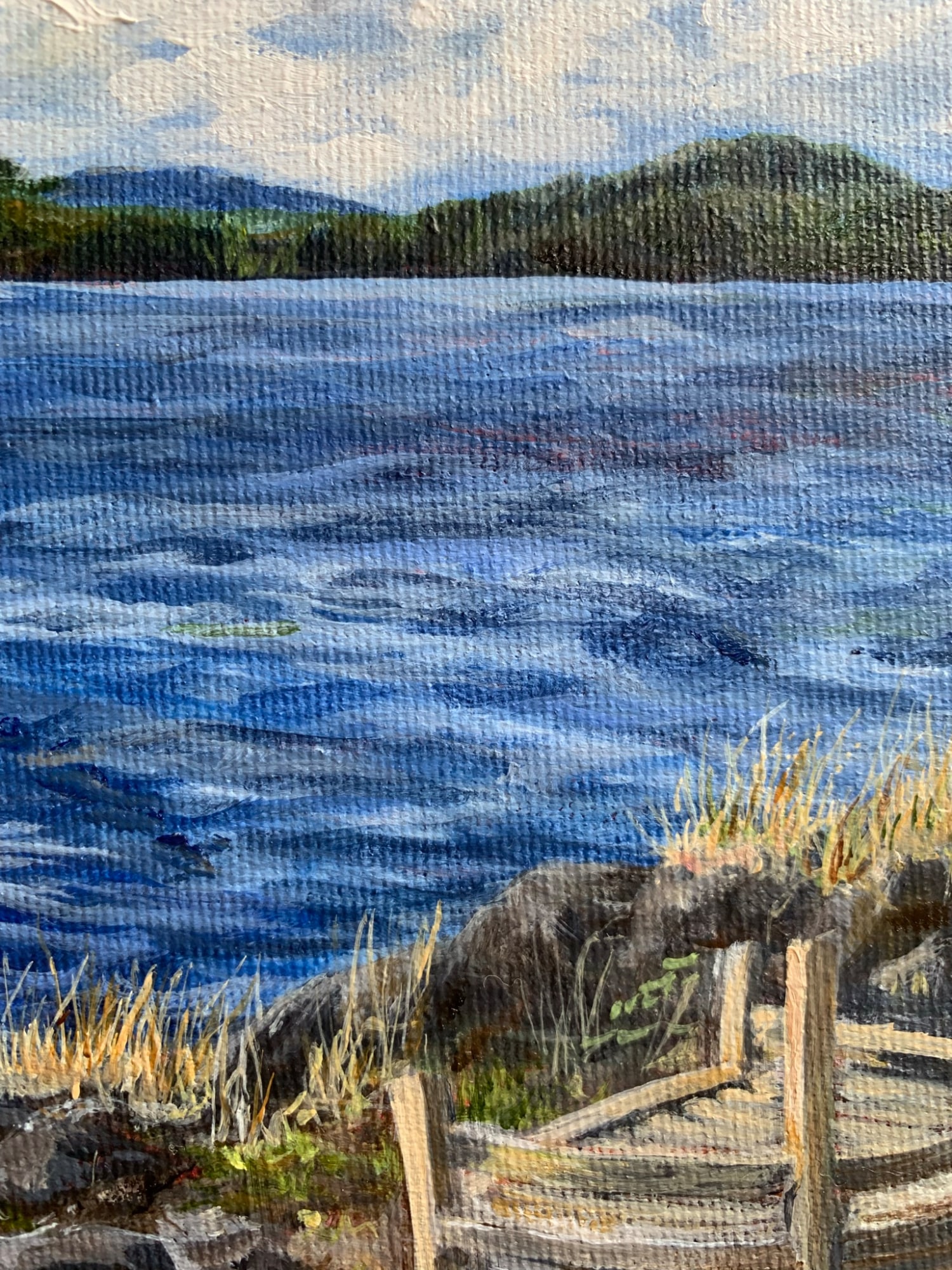 I’ve watched the sea from this spot on the trail to St.John’s Point, now the lookout is down to one chair. The weathered wood has a beautiful patina as it sits waiting for its next visitor!