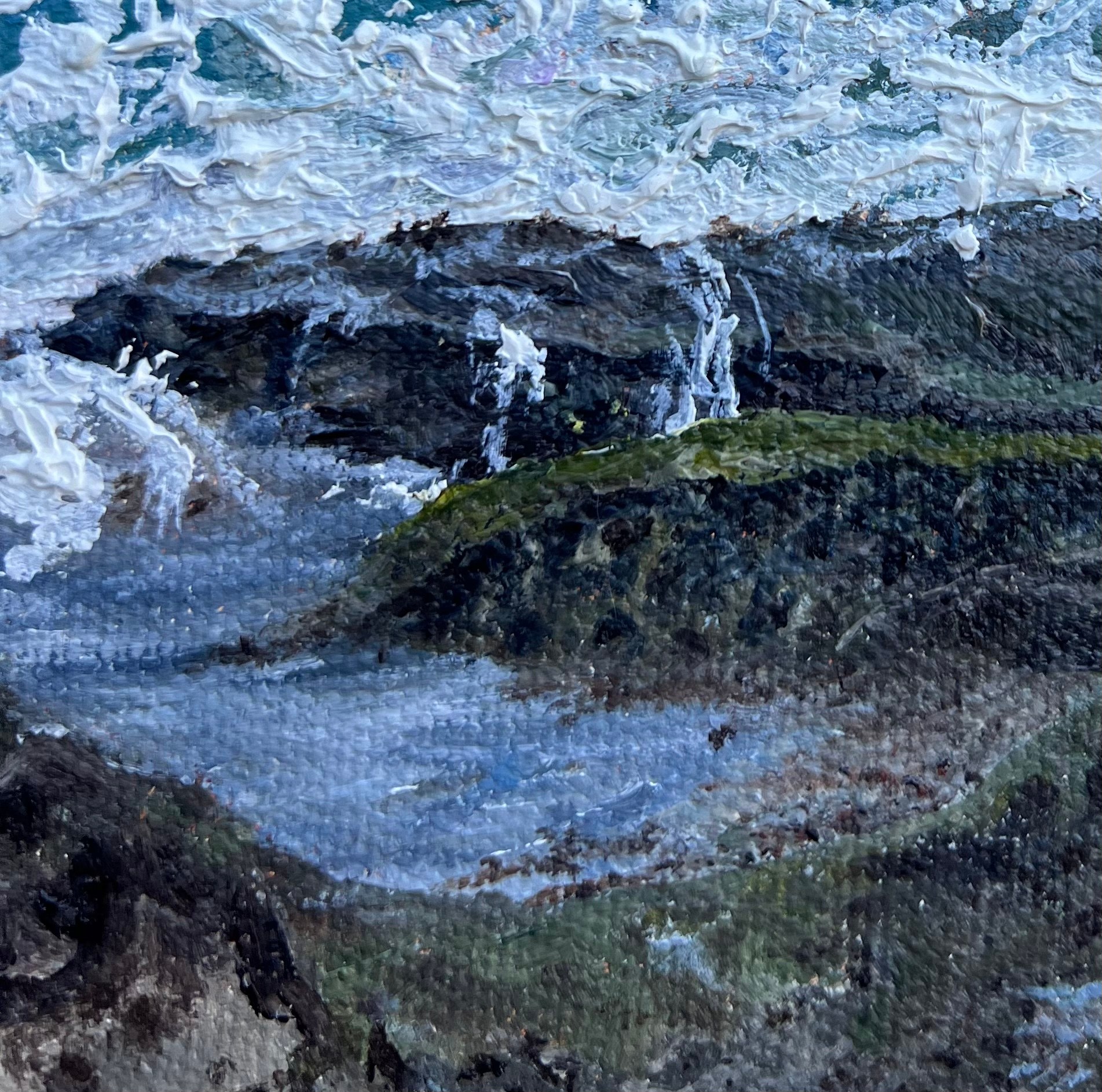 Navigating across the slick sandstone on a crisp winter day for some waves on repeat!