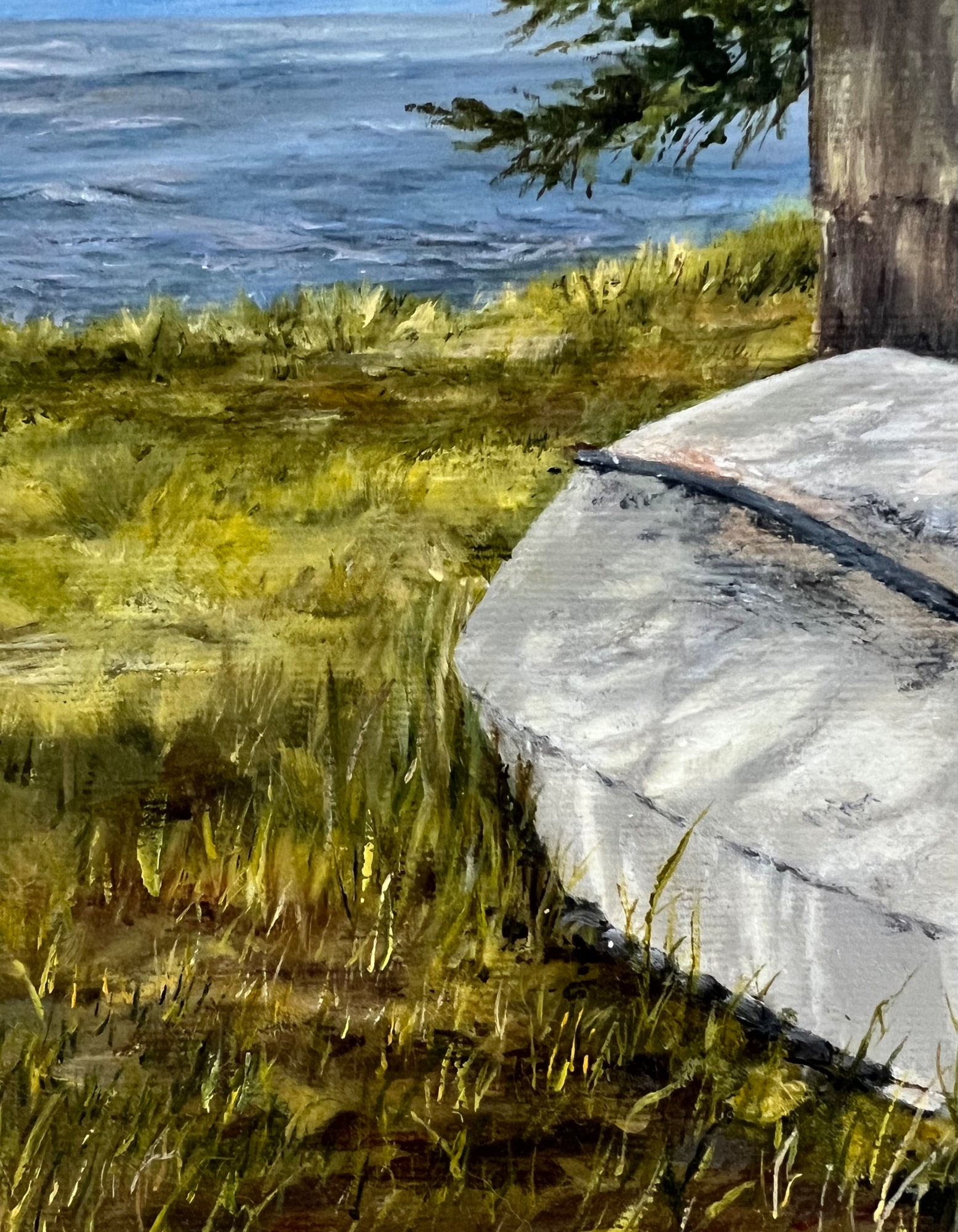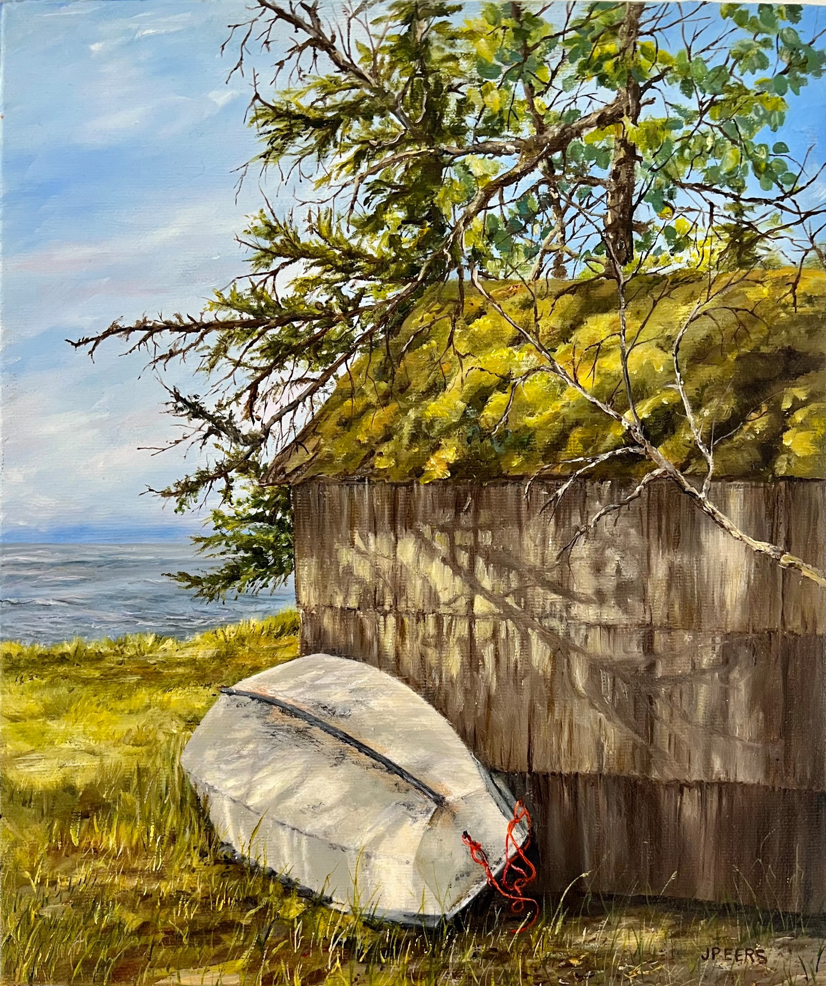 This little tender is waiting patiently to start another journey to the shore and then the ocean. Just a beautiful sight in such a quiet spot. The mooring lines red adds to the fun of this piece!