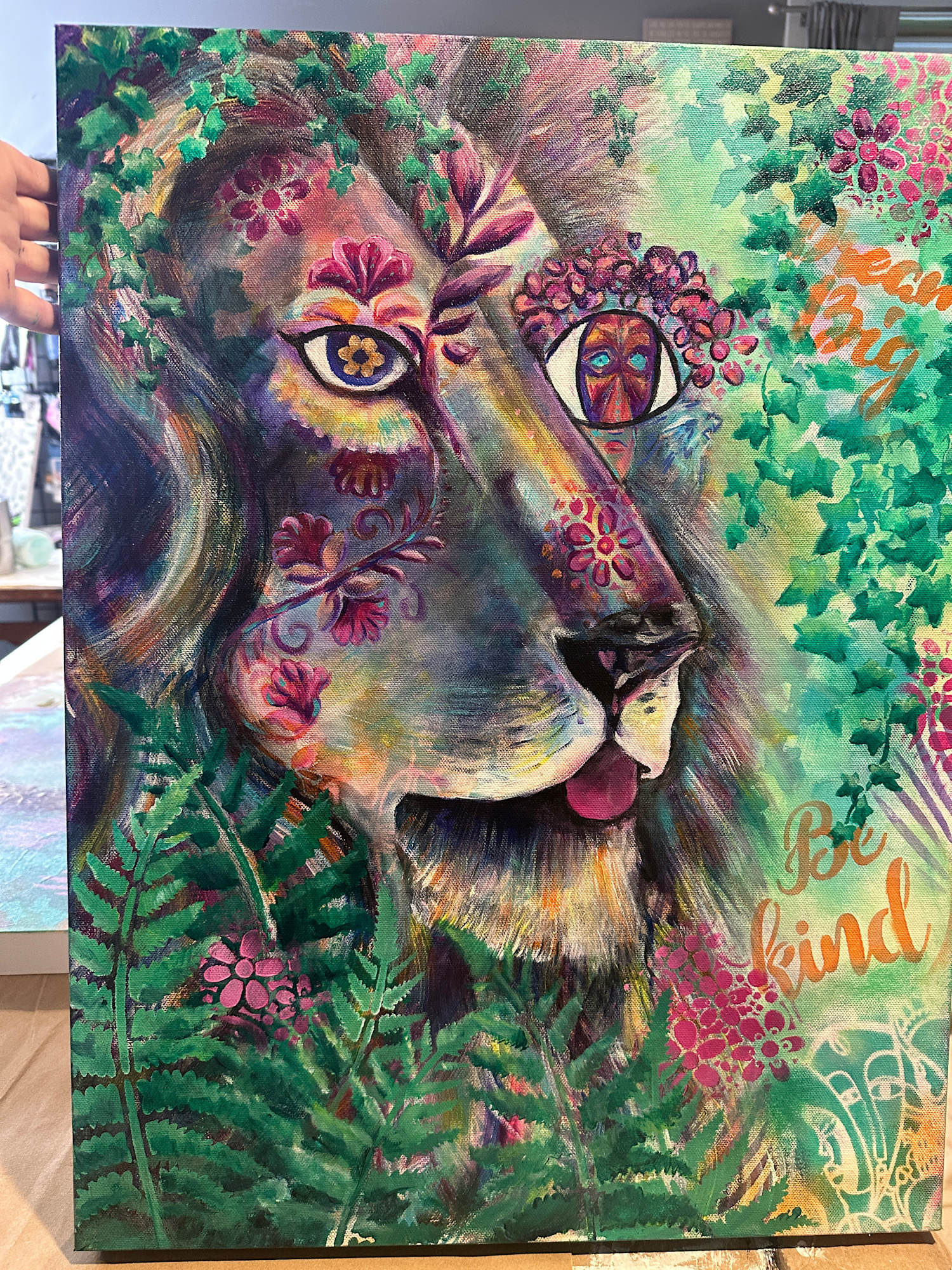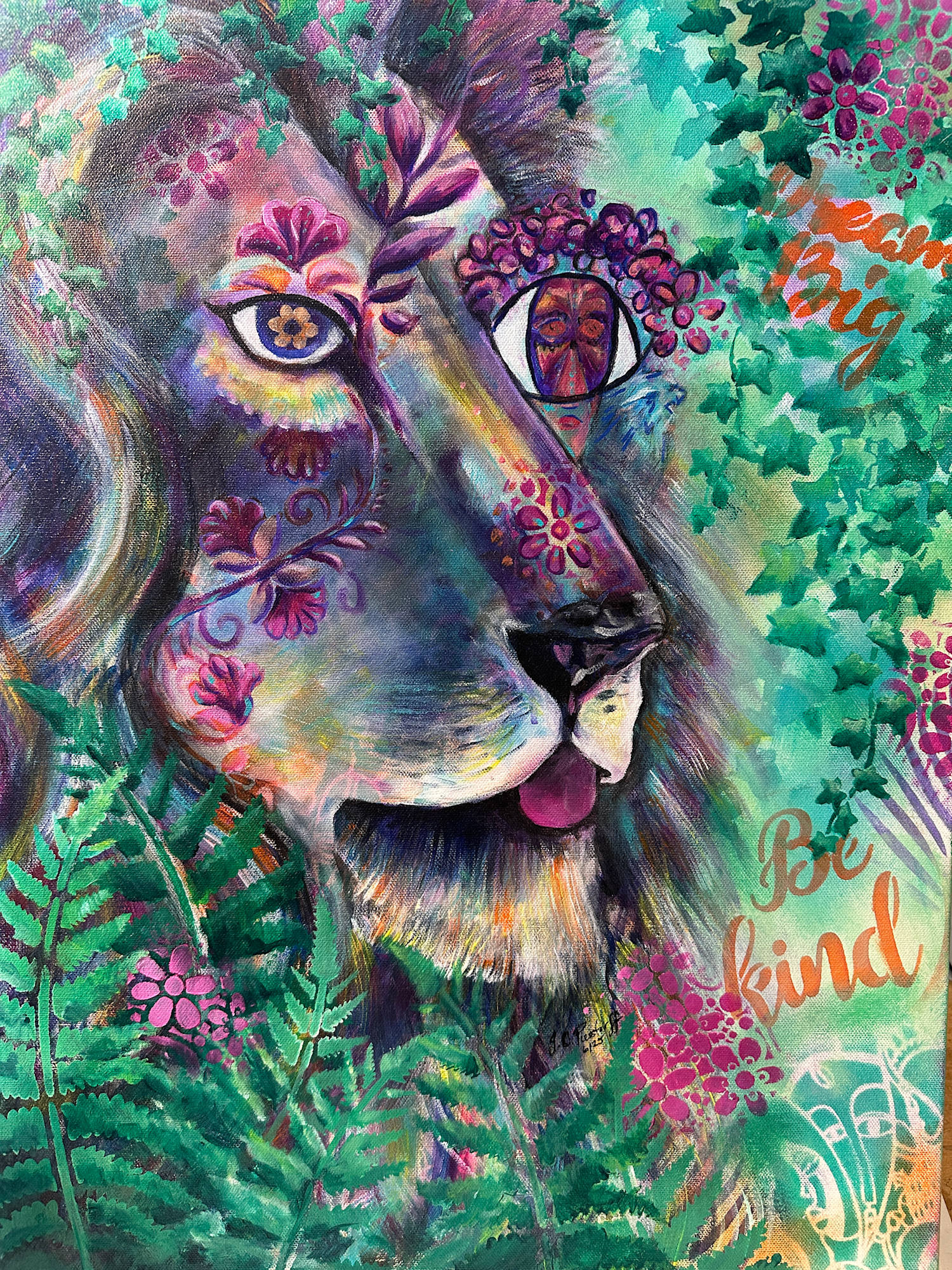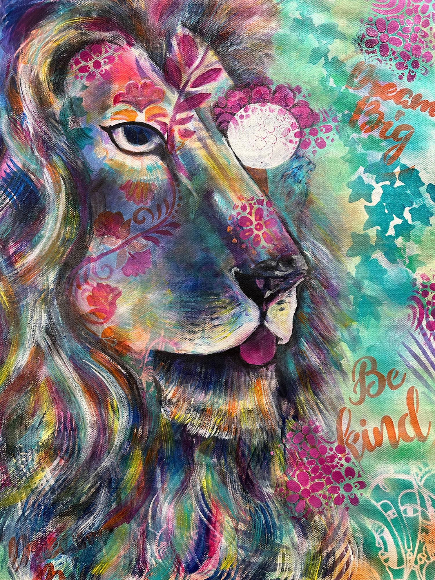 In the heart of the wild, the lion teaches balanceābravery with softness, strength with grace. His roar shakes the forest, but his kindness steadies it. Wrapped in ferns and flowers, he reminds us that true power lies not in how loudly we roar, but in how gently we lead. To dream big, to be kind, and to stand tallāthese are the markings of a lion-hearted soul.
