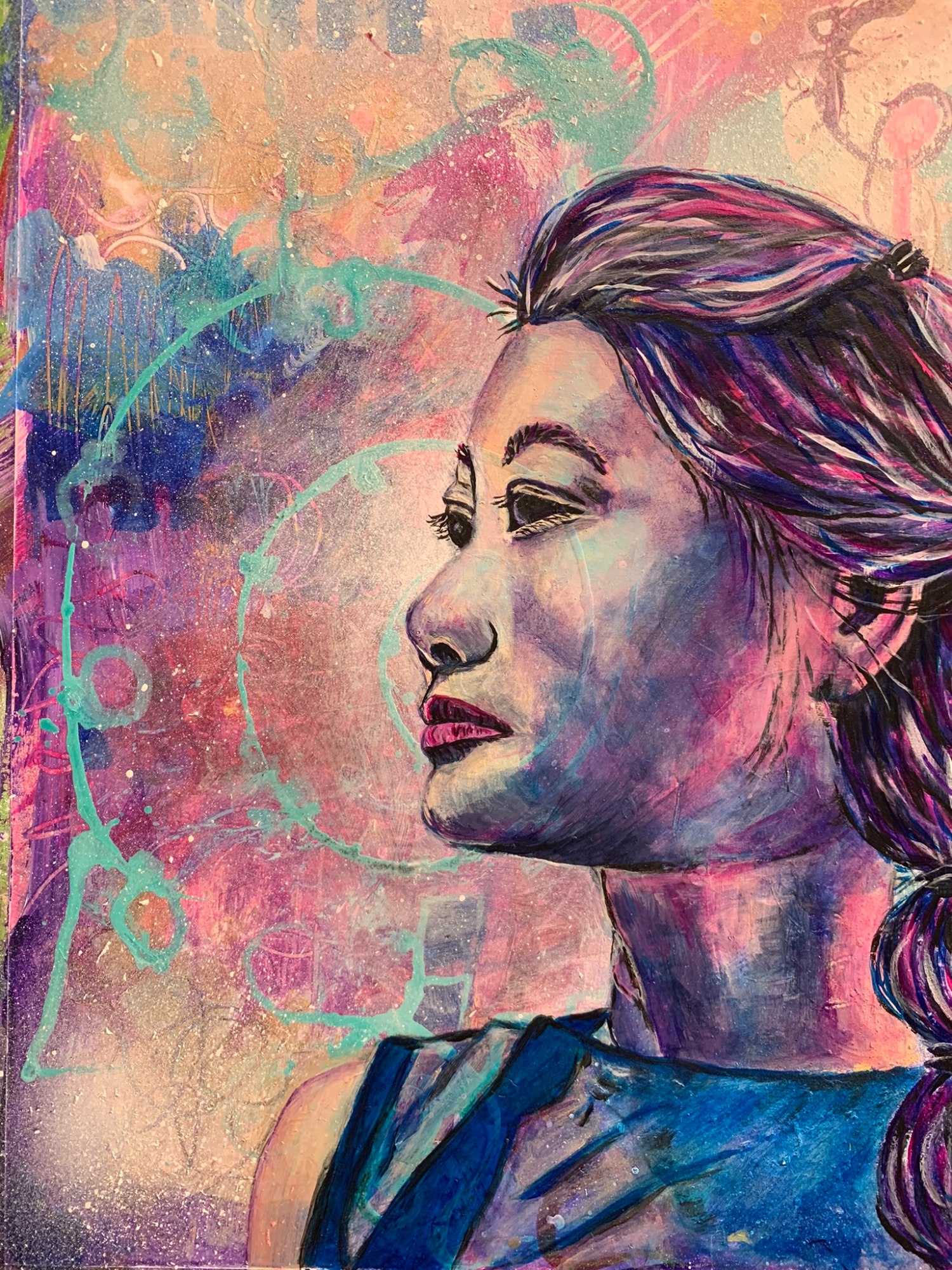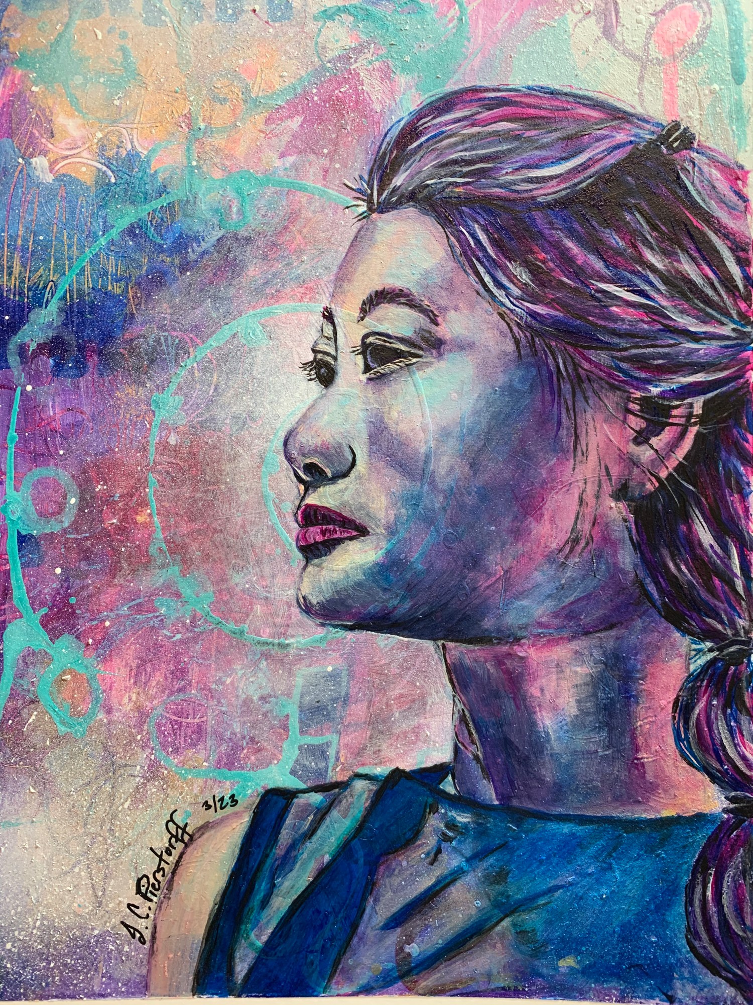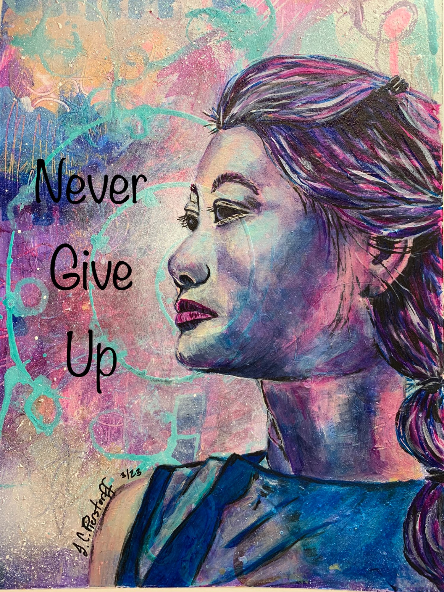 "I am Strong" is a manifestation for so many women. This piece represents the strength of will and character, the ability to face whatever life throws at us, and thrive. We stand strong, yet have an inner gentleness. We choose to never give up and proudly display who we are. And that authentic stance allows others to stand in their own space and feel strong too.