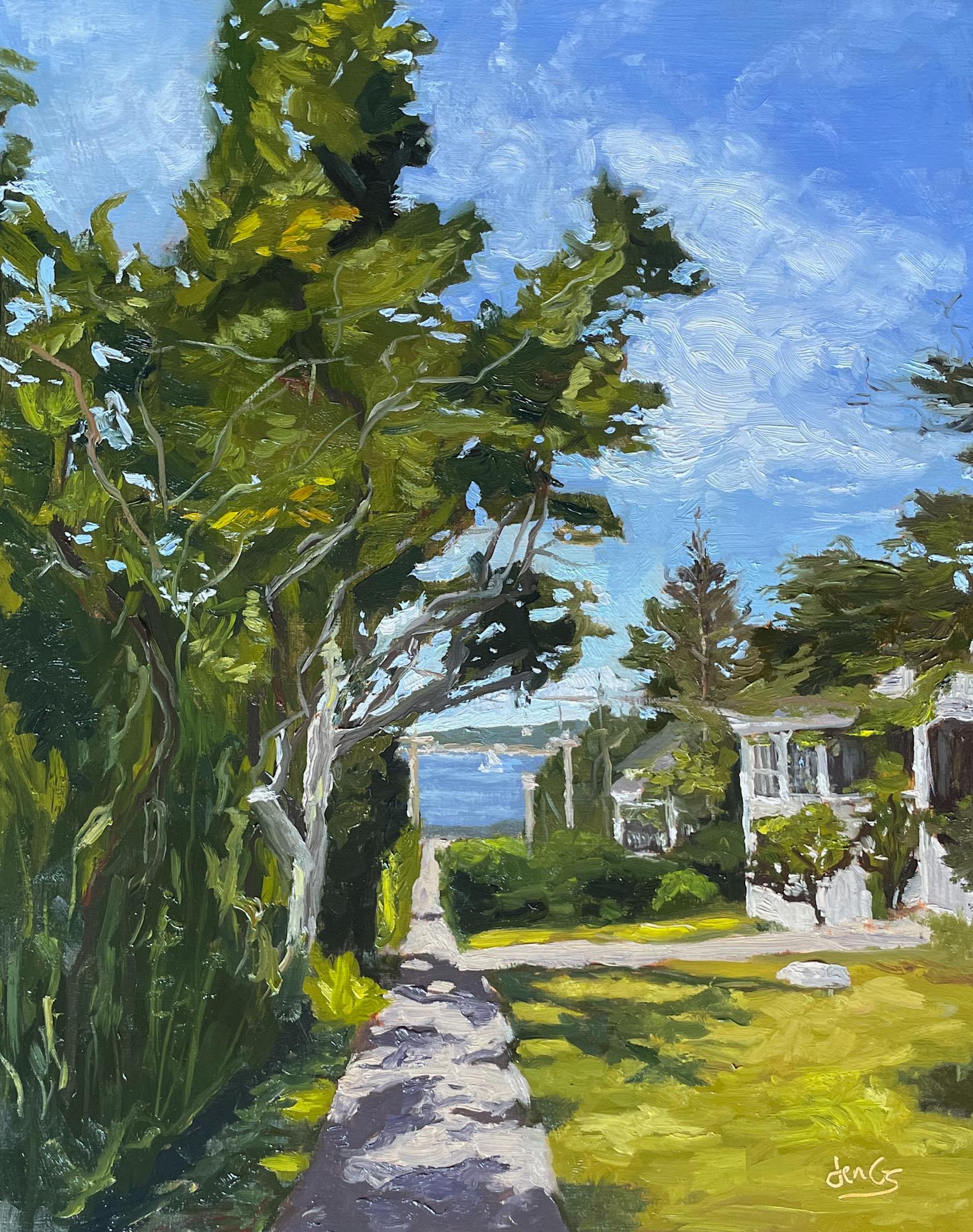 A classic Squirrel Island view walking down the hill - known as "Feeling Strong" - by the Thompson house.