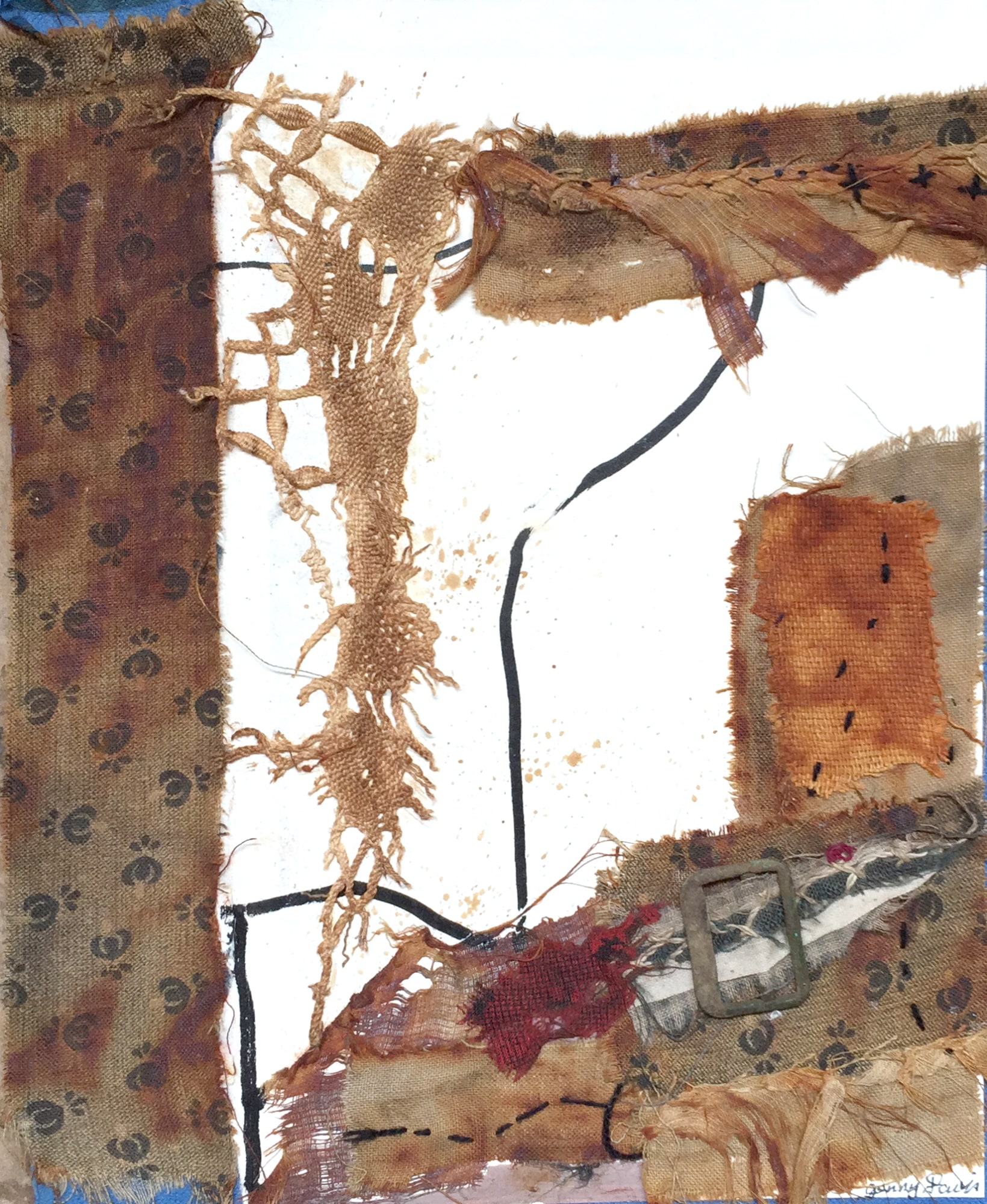 Ready to hang with a carefully hand- sewn wire fence dropper. (Unframed)