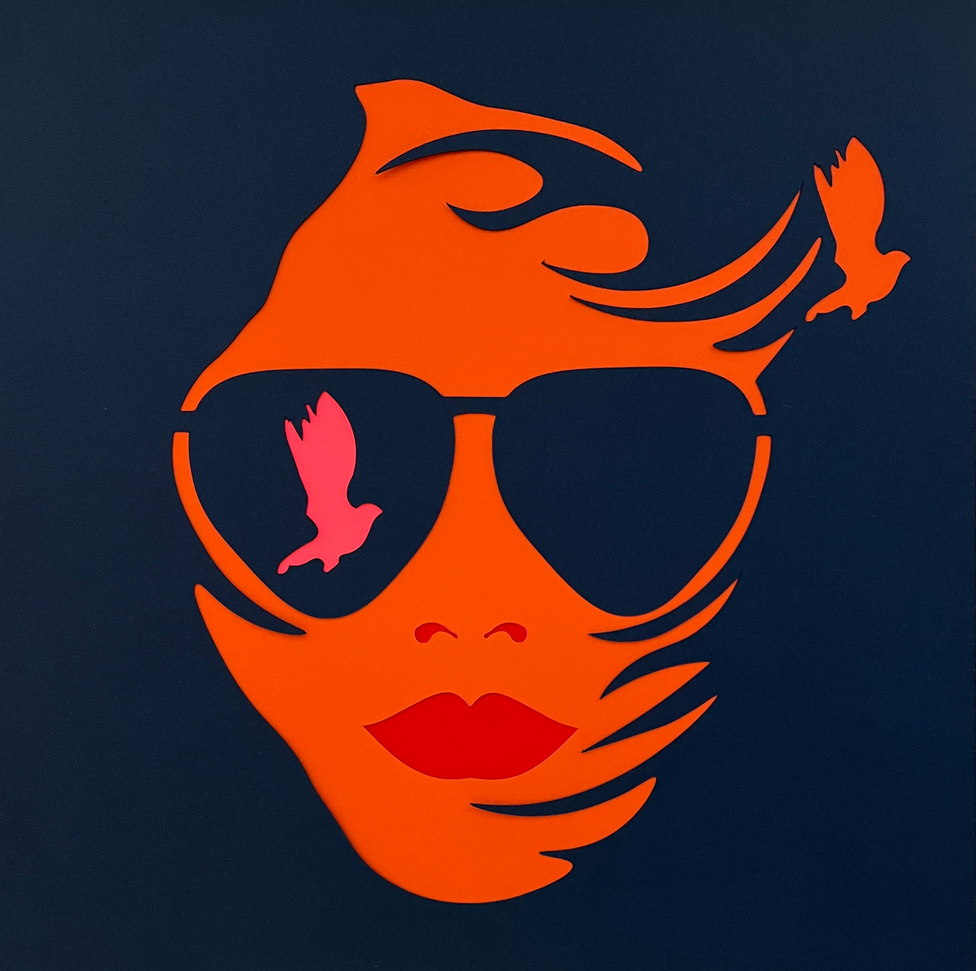 Release — 12 × 12 inches. Paper-cut graphic portraiture capturing a moment of calm and internal balance.