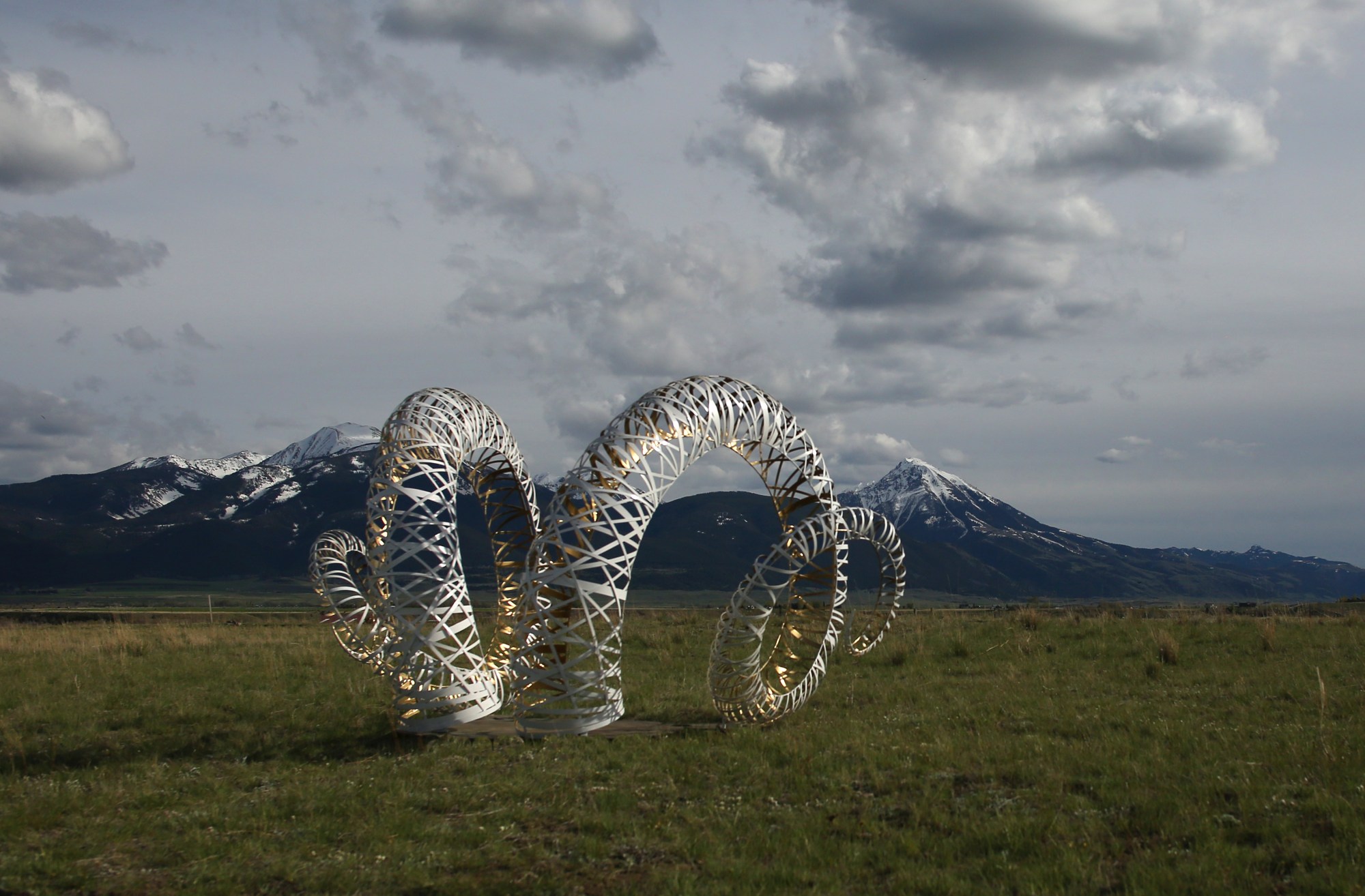 The Native American Rocky Mountain Bighorn sheep is now extinct in many regions due to overhunting and loss of habitat and efforts are being made to re-introduce and protect these majestic animals. The Golden Ramhorn sculpture is in honor of these beautiful creatures and serves to recognize the Bighorn Sheep.