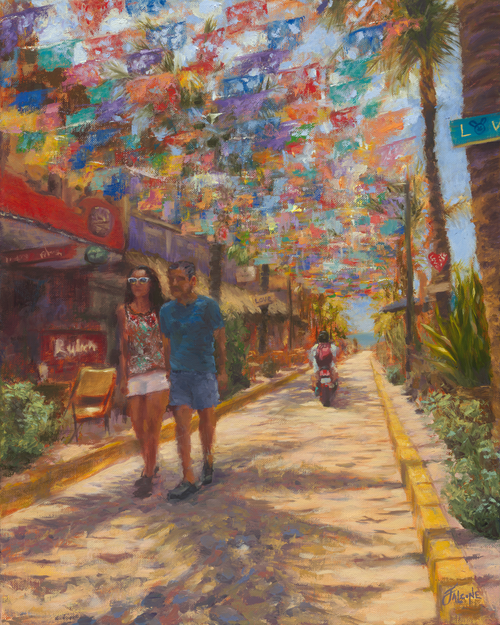 Lovers strolling down the colorful Calle de Amor in Sayulita. Getting lost in the streets of Sayulita, Mexico is like falling in love... I call this "Calle de Amor" ...it's a little street that leads from the town center to the ocean...it's so magical with the colorful flags and dancing shadows...a visual playground that just makes me smile :)
