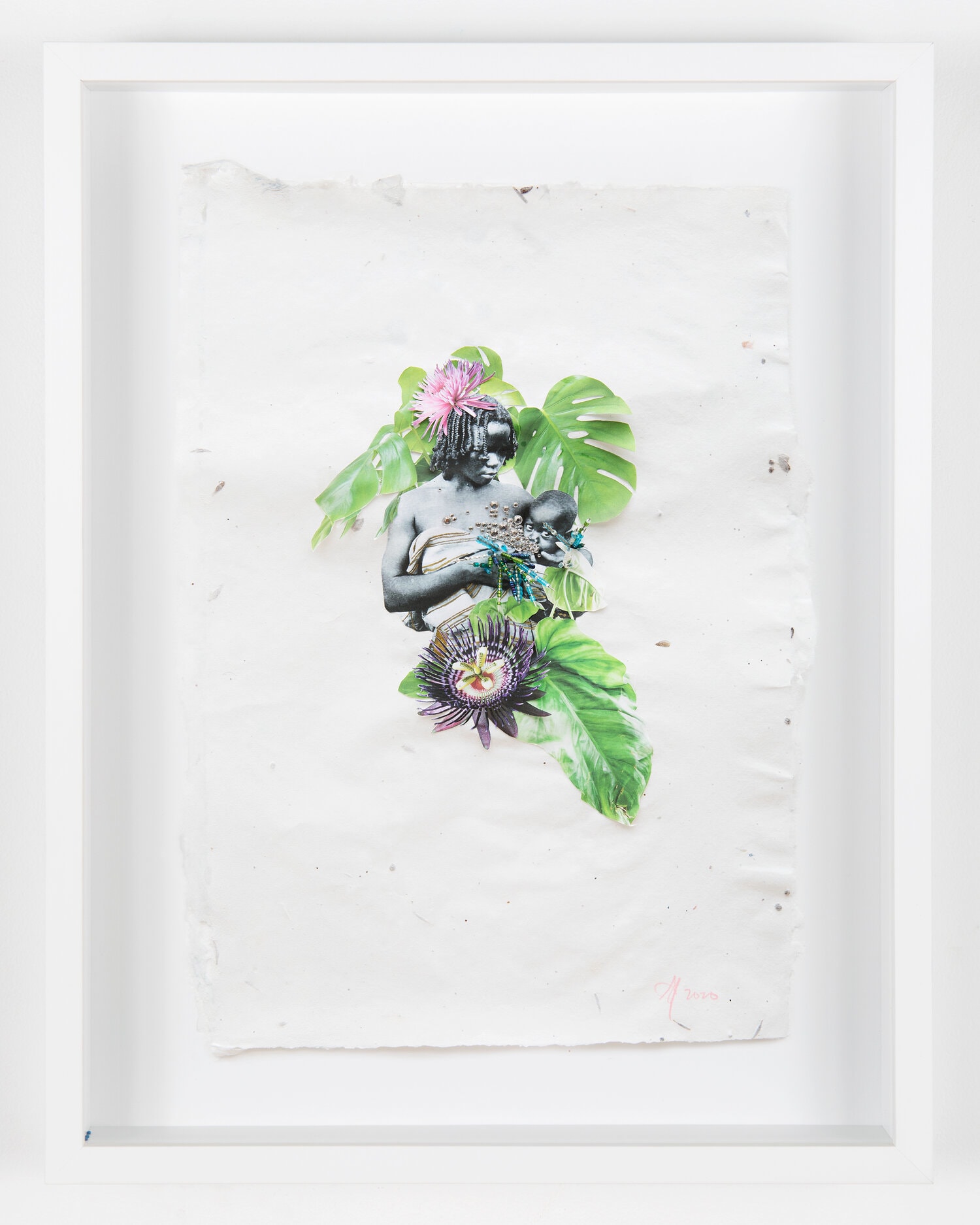 - rhinestones, pins and beads on paper handmade from traditional birthing cloth