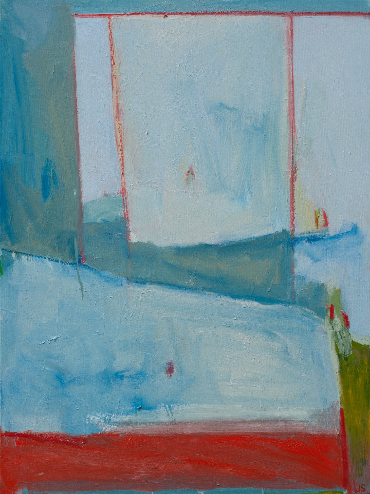 A quiet painting… blue geometry… oceans… calm… and some red for contrast and to wake things up a little!