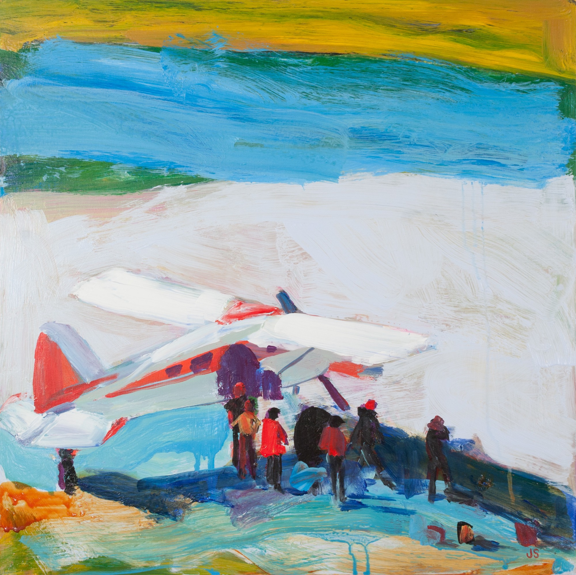 Flying is magic! I love the contrast between the color and detail in the plane and people compared to the vast space around them.