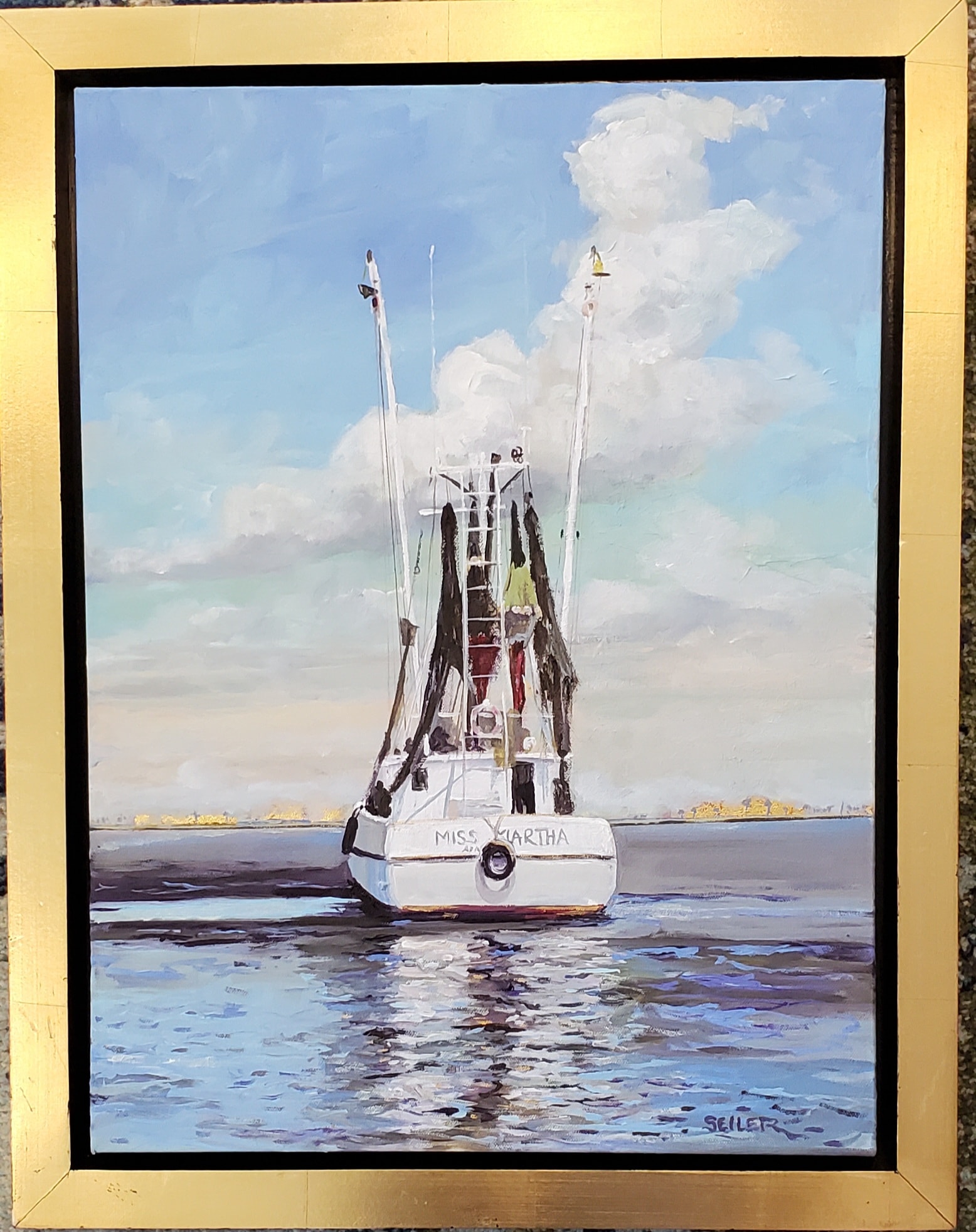 Y'all know this is my favorite shrimp boat. Acrylic with gold leaf. She works hard and brings my favorite little morsel from the sea. I love her. ❤️