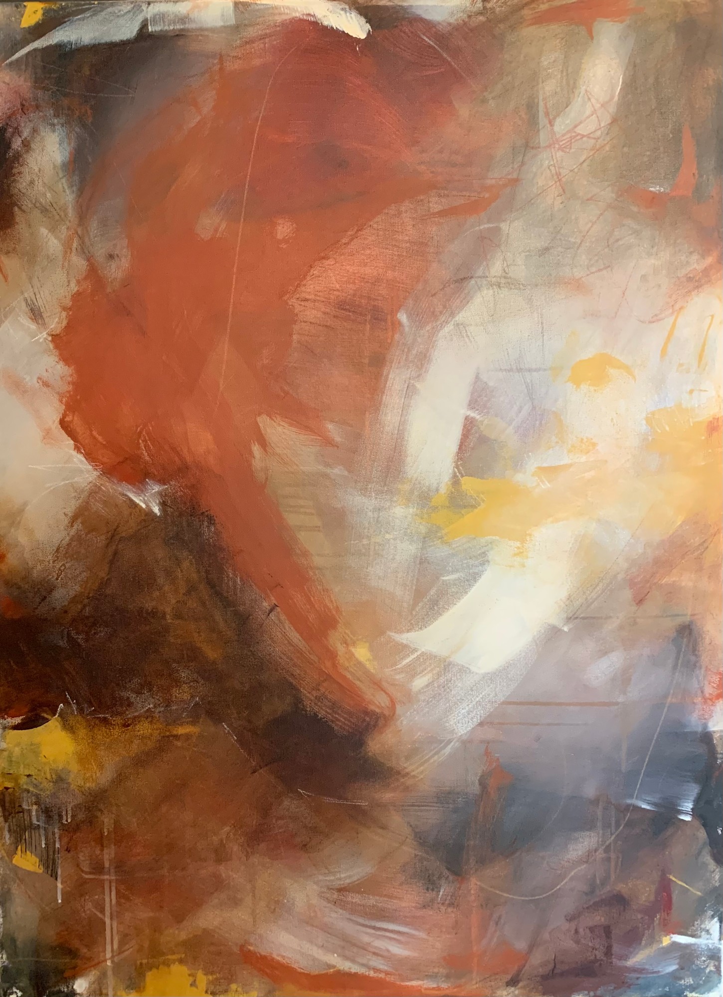 A piece with depth from multiple layers of paint and mark making. Use of oils brought dimension and richness to the piece. The colors reminded me of the changing color of the leaves, and patterns in which they fall from the trees…Autumn Days.