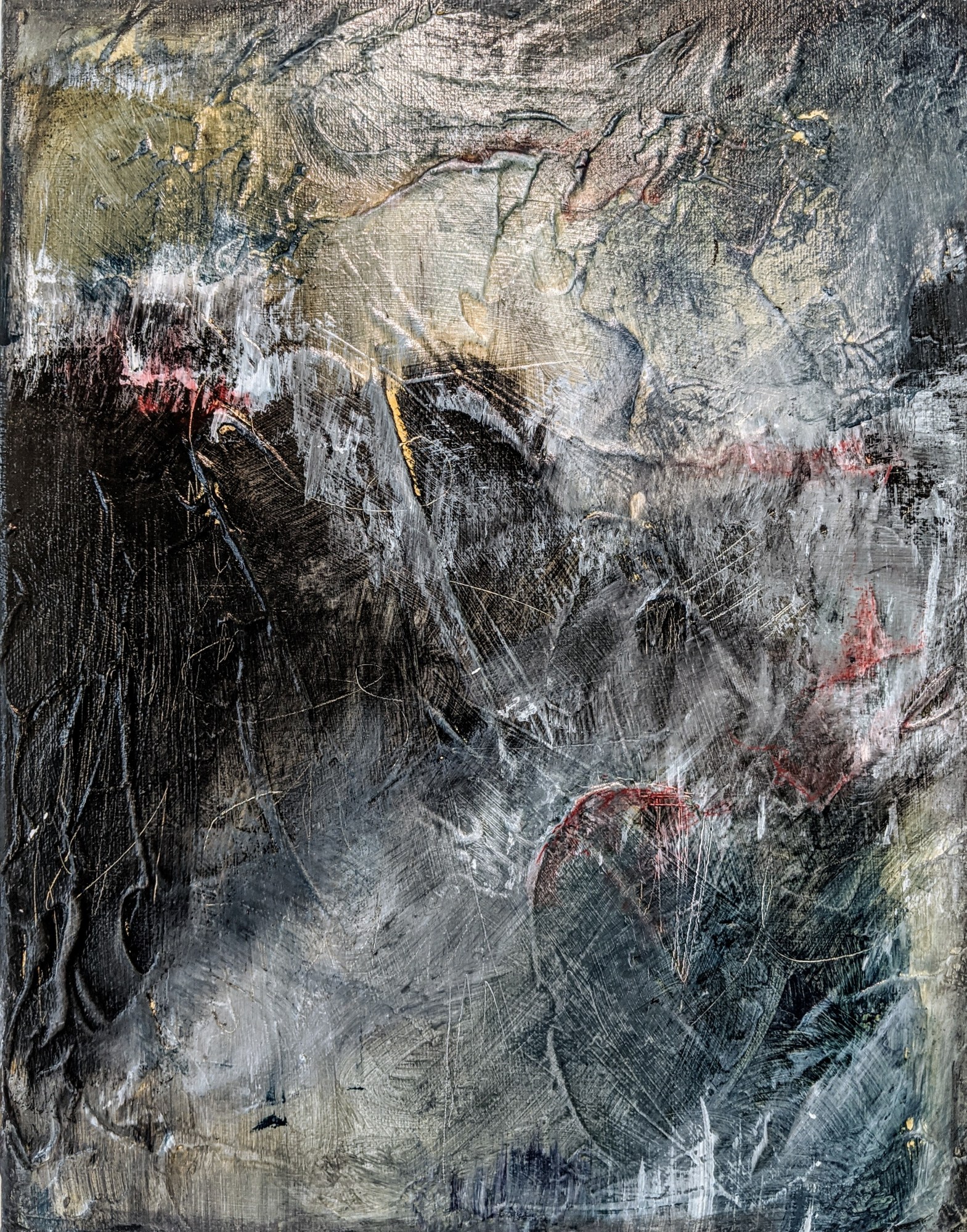 Atmospheric loose brushwork,muted palette suggesting the depths of space.
