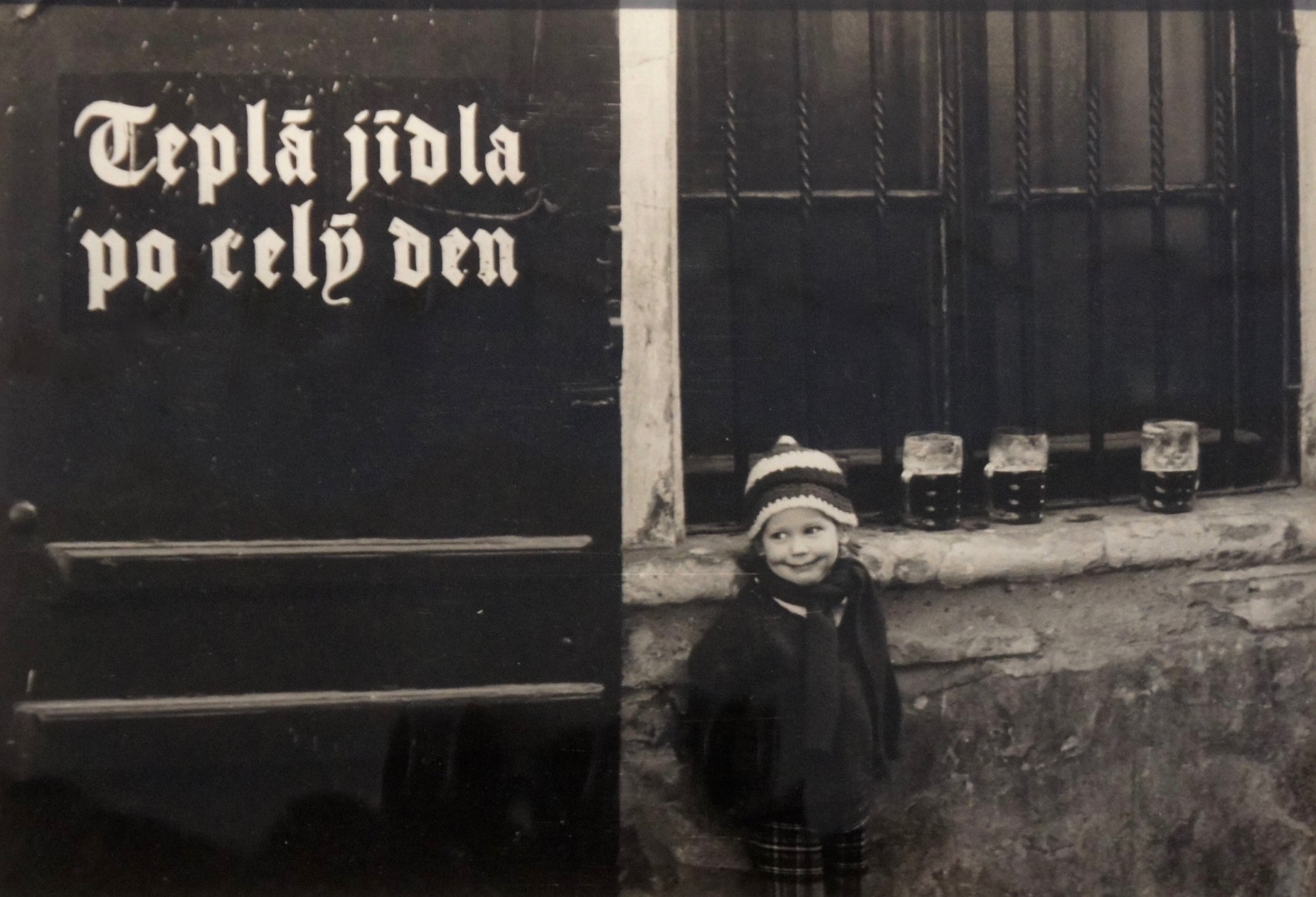Translation of sign on door outside pub and child waits for parent per wife of artist.