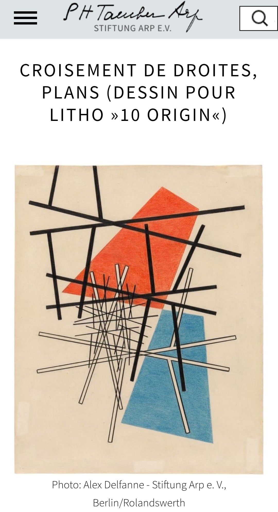 This kiln-formed glass vessel is a visually striking piece inspired by Sophie Taeuber-Arp’s 1942 drawing , "Croisement de droites, plans" (Crossing of lines planes) echoing her dynamic abstraction style. The design incorporates bold, intersecting black lines that create a sense of movement and structure against the white background. The vibrant color palette of red and blue adds contrast and energy, with the translucent hues glowing under light, creating an interplay of reflection and shadow.