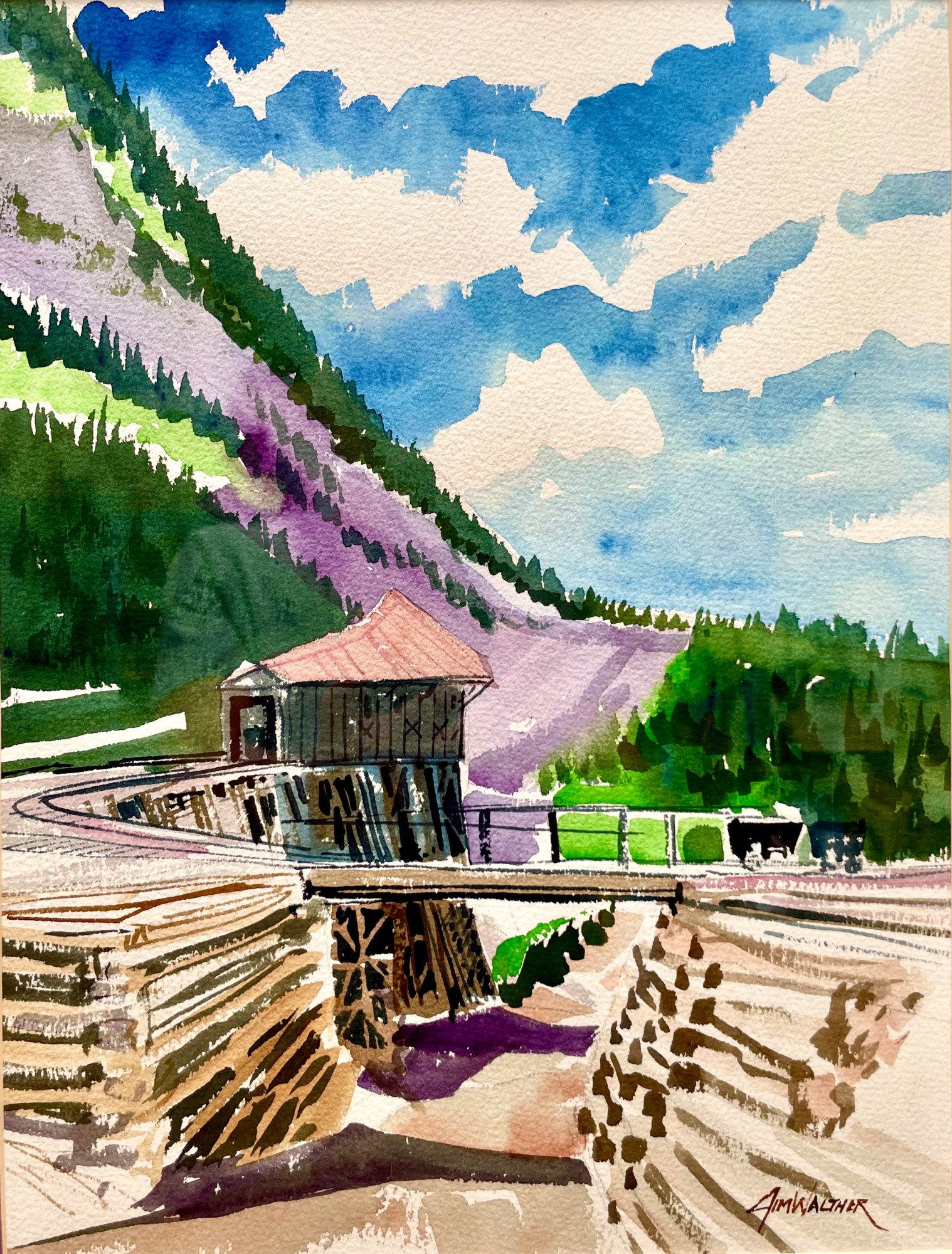 My son Nathan loves this remote part of Colorado. He was working near here in the summer of 2001 and we visited him. Here is a large watercolor painted by the side of a rough mountain mining road, painted on location on Bachelor Loop Rd. above Creede CO. 100 years before, this was a booming silver mine.
