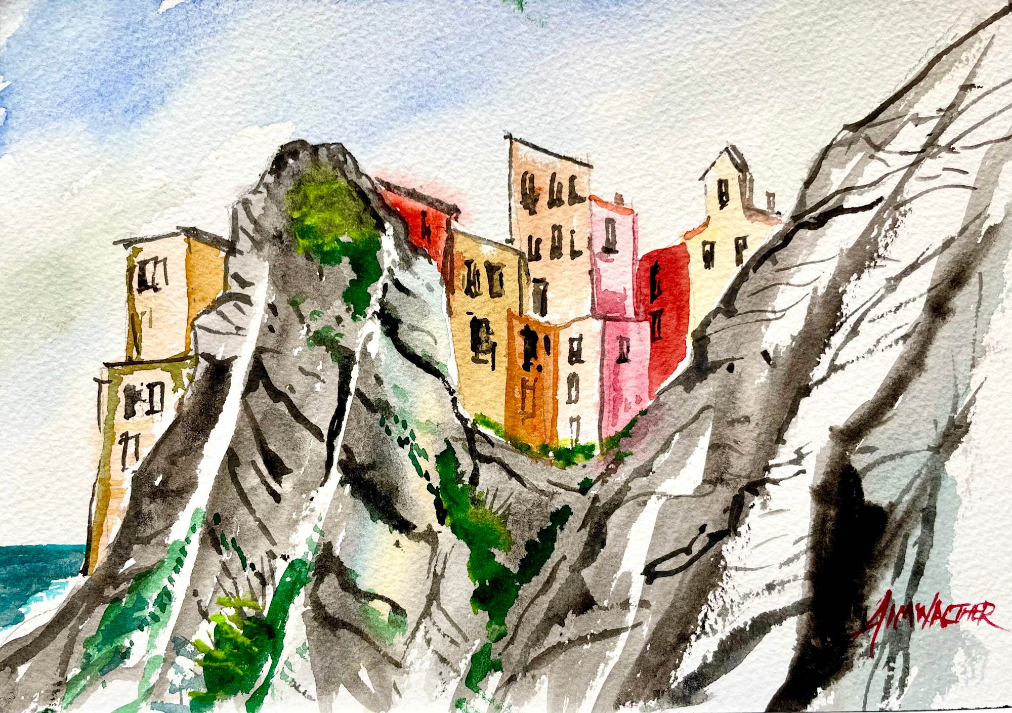 Painted from the window of the Hotel Grand Porto Venere of the little harbor.