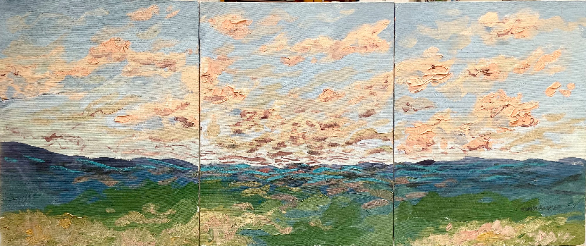 A group of three paintings of the Allegheny plateau in West Virginia.