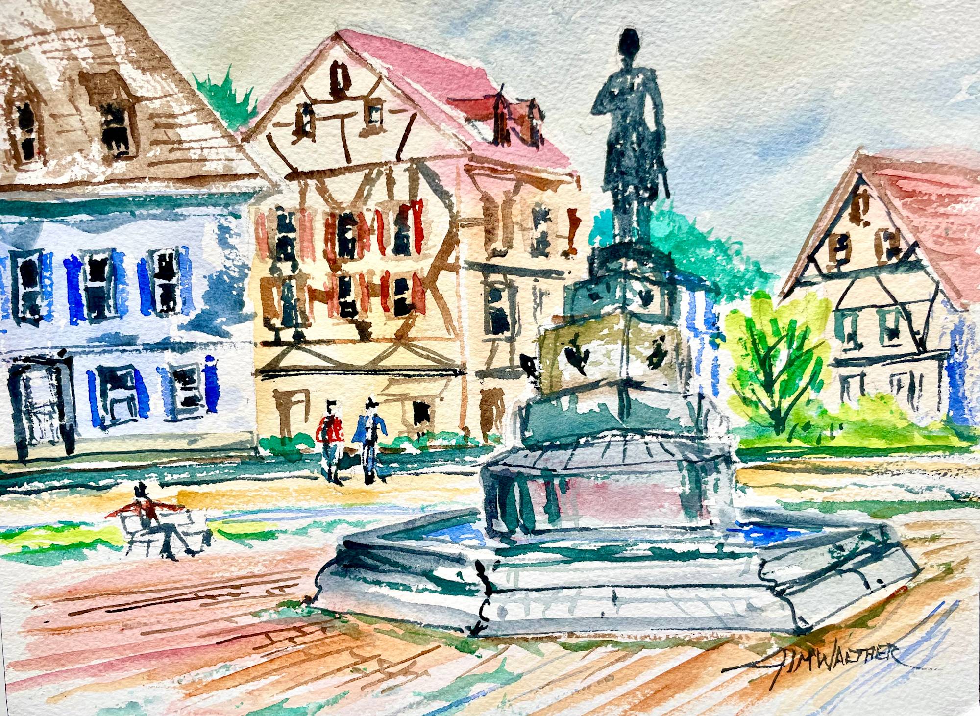 The square in historic Colmar France, features a stature of the Marechal (marshal) from the Napoleanic era.