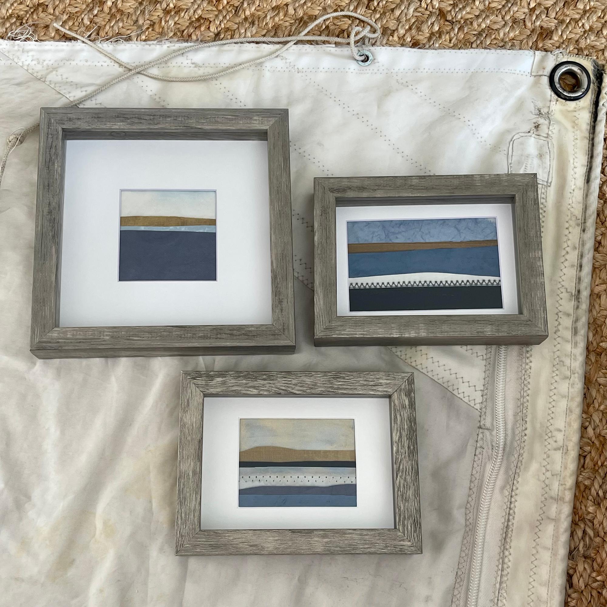 Repurposed "retired" nautical sail and dupioni silk mixed media art.