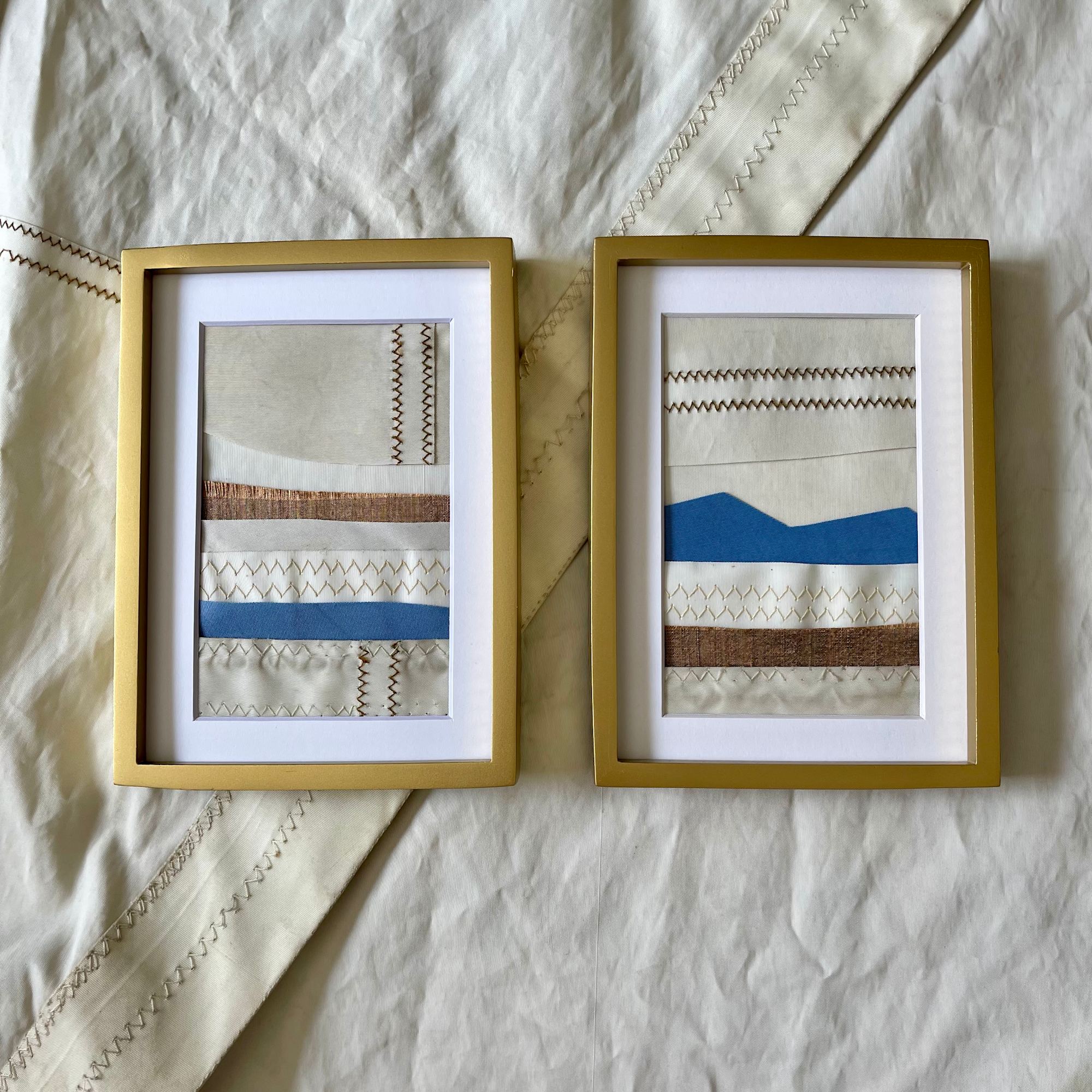 "Retired" nautical sail with vintage dupioni silk - mixed media art