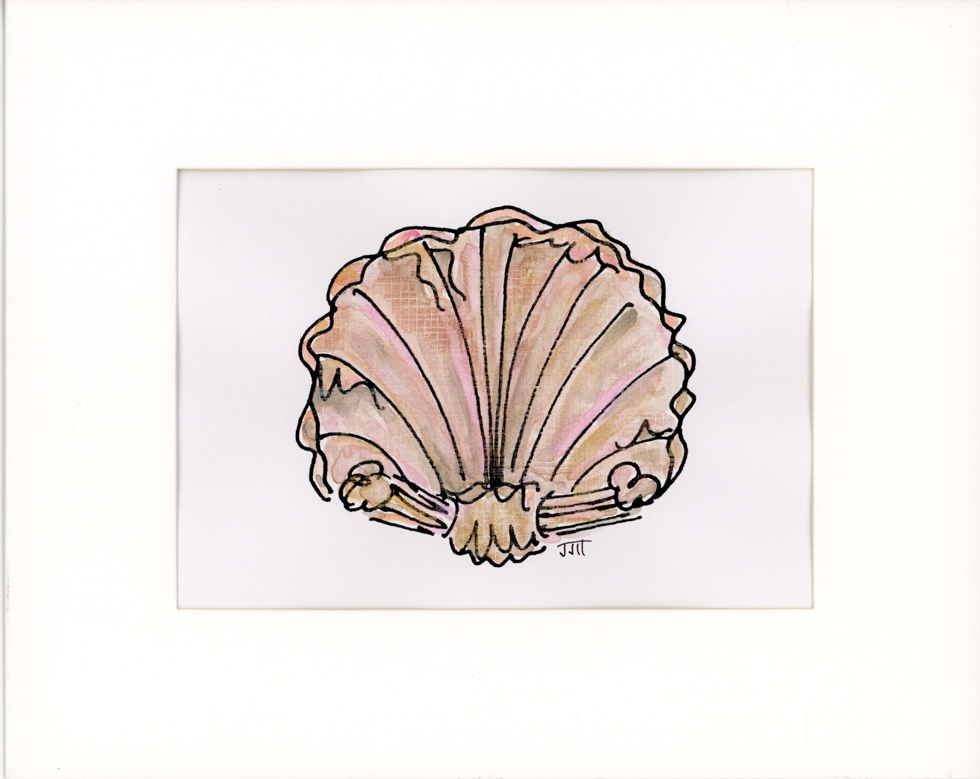 Bevel-cut archival-quality mat showcases 5x7 original watercolor and ink design. Professionally finished with backing board in clear acrylic sleeve.