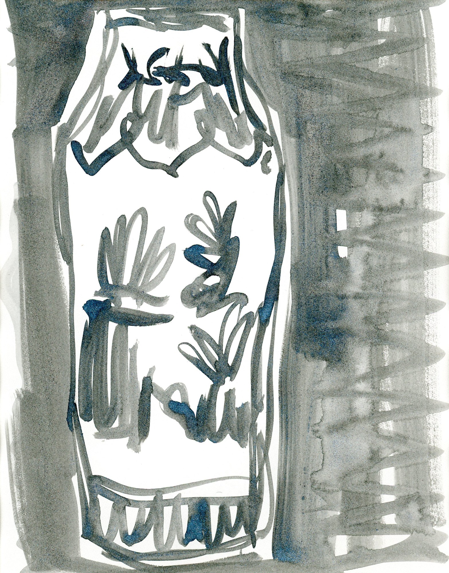 Decorative Vase painted on 100% cotton grey paper in a metallic grey watercolor paint