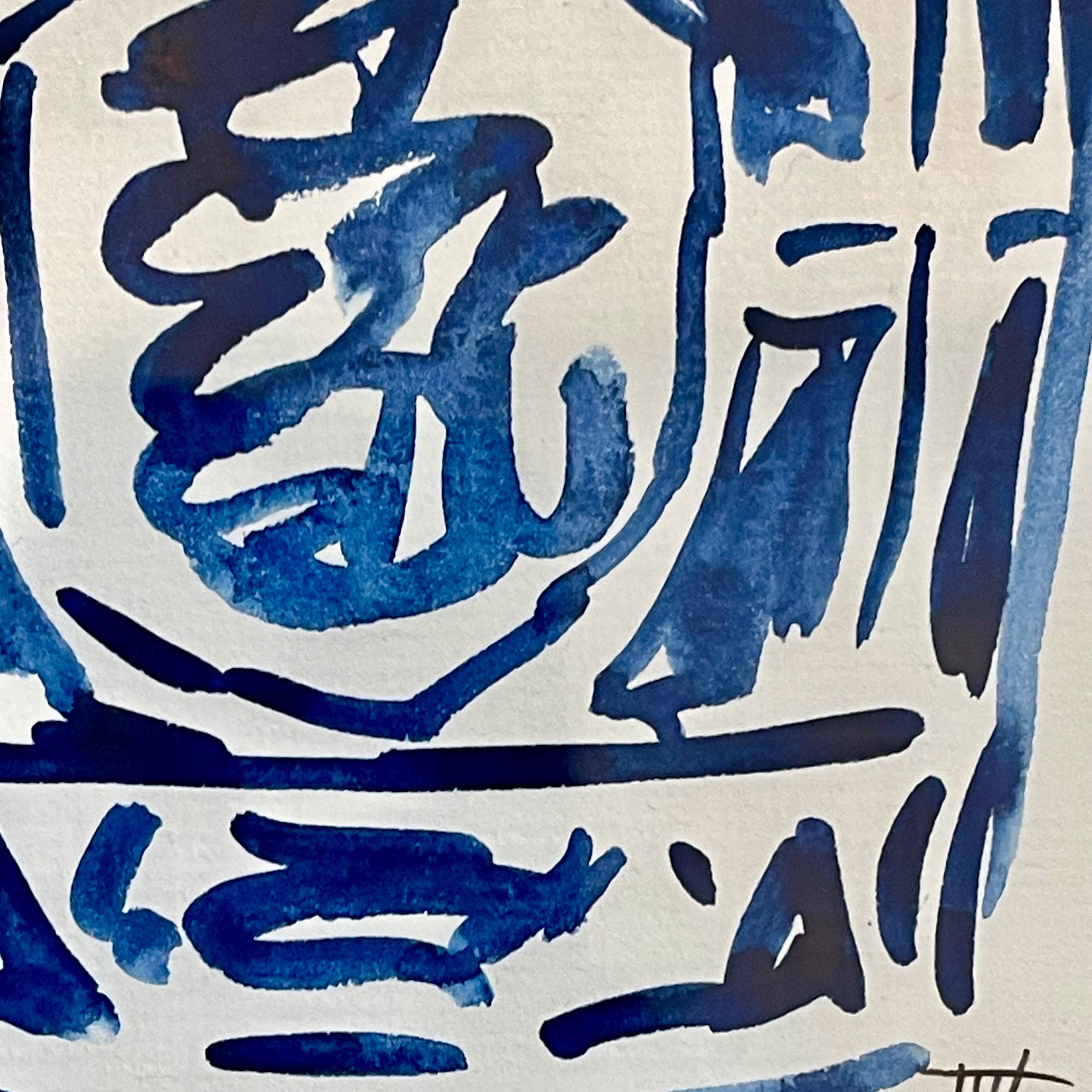 8x10 professional art gallery mat showcases 5x7 chinoiserie watercolor. Ready to frame.