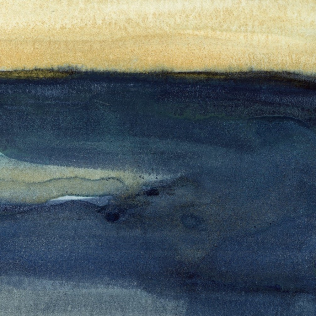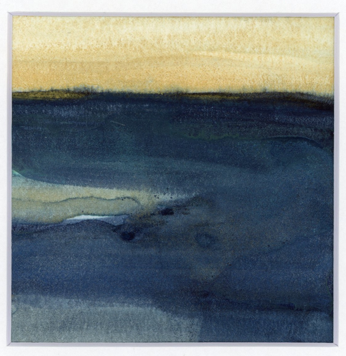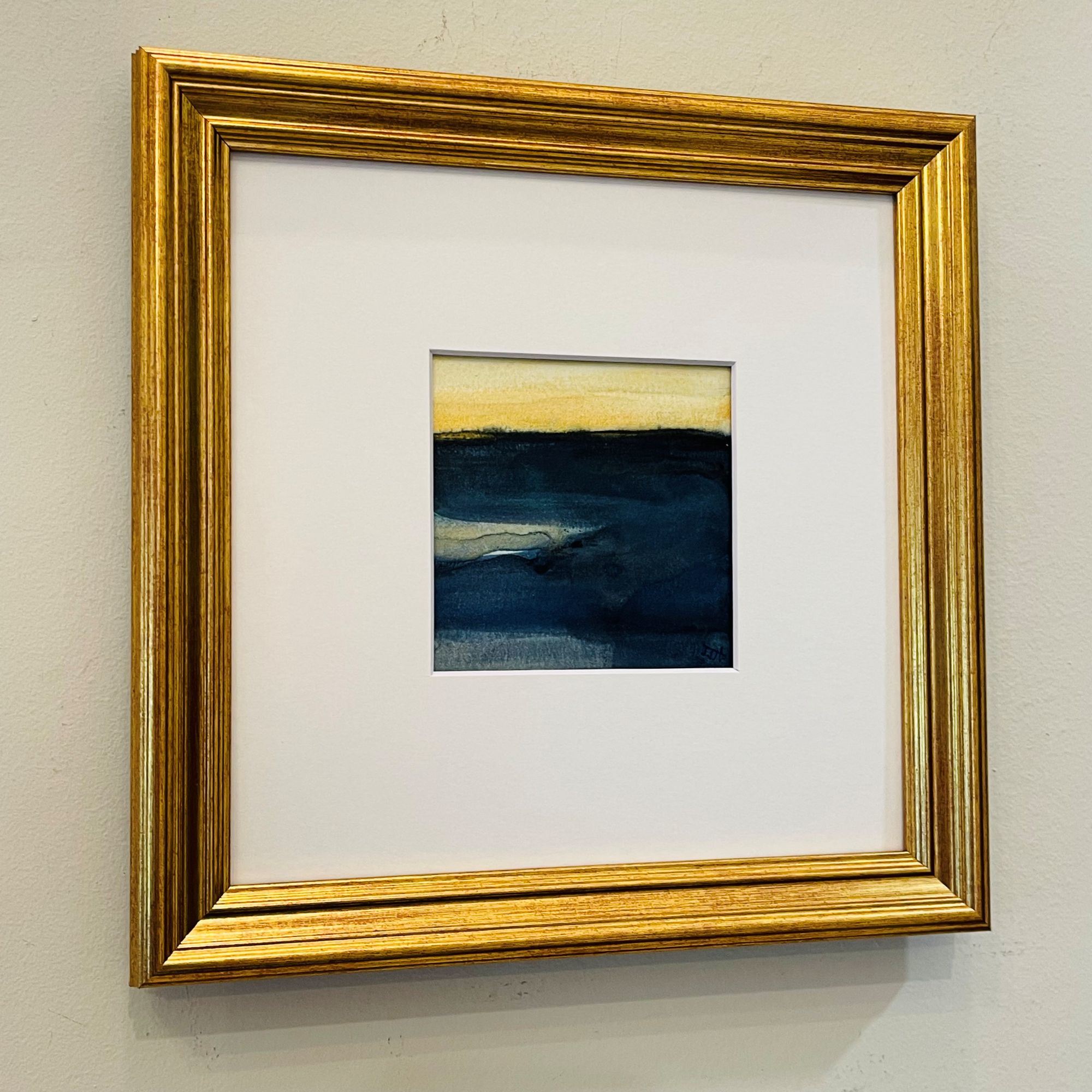 This "contemplative" coastal-landscape watercolor is professionally finished with a classic burnished gold frame. Evaporating sunlight on the land and water soften the eye. A custom paint palette makes this a classic for any decor.