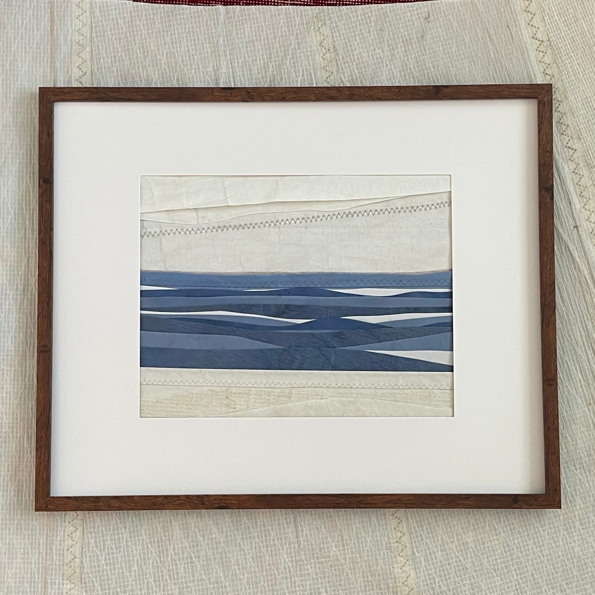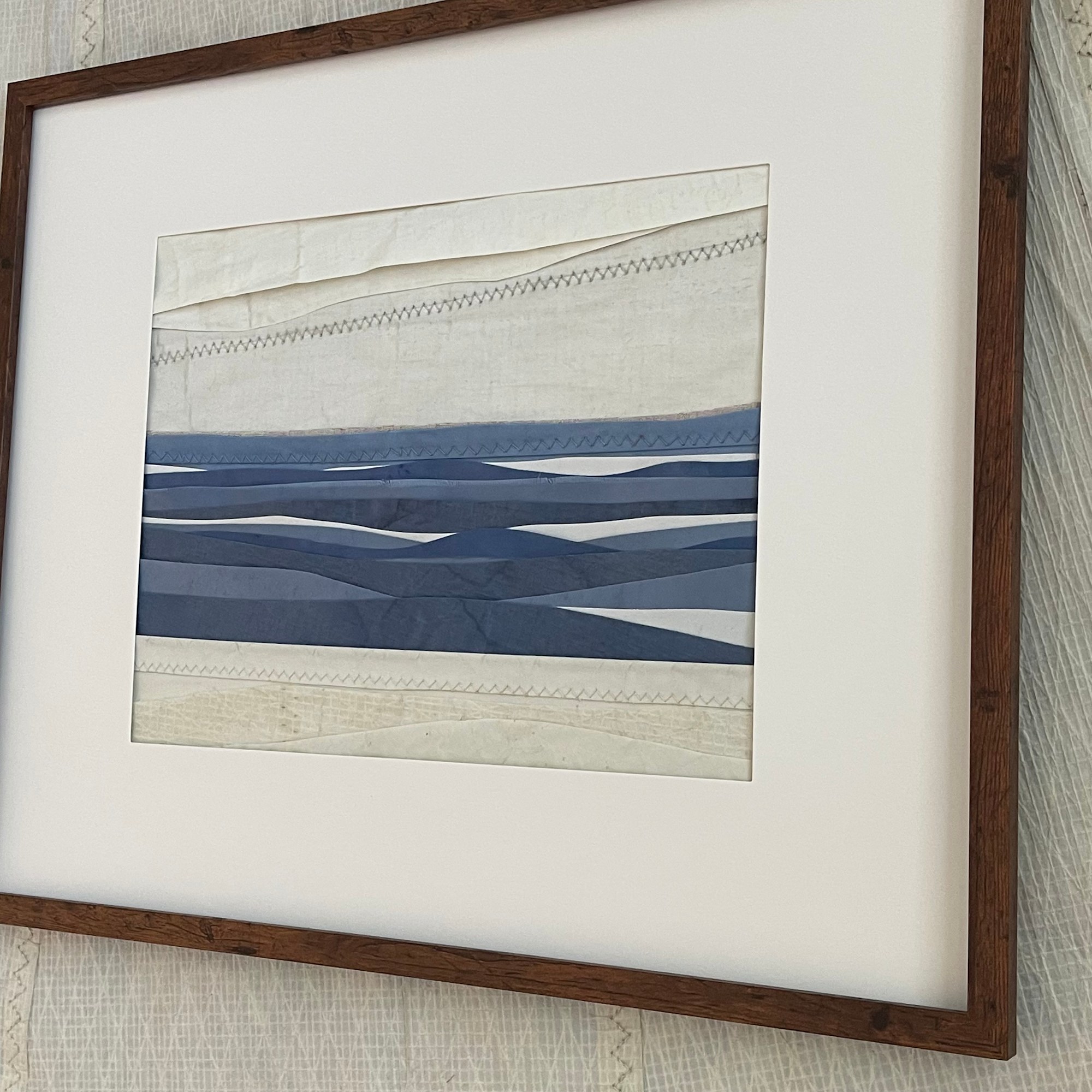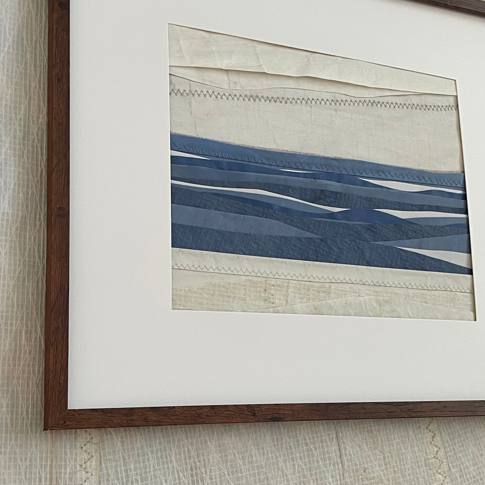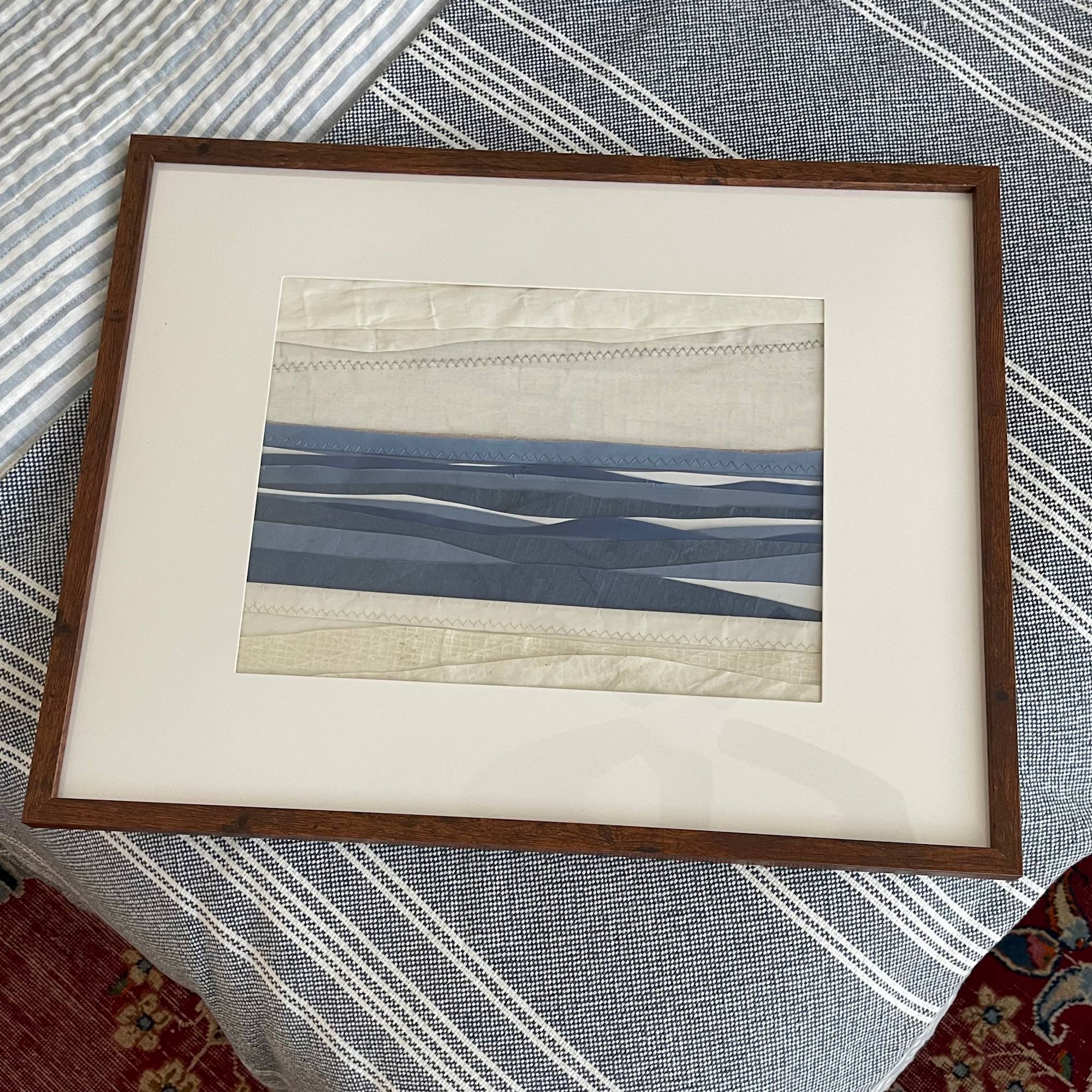 Repurposed "retired" nautical sail, aviation chart and dupioni silk mixed media art.