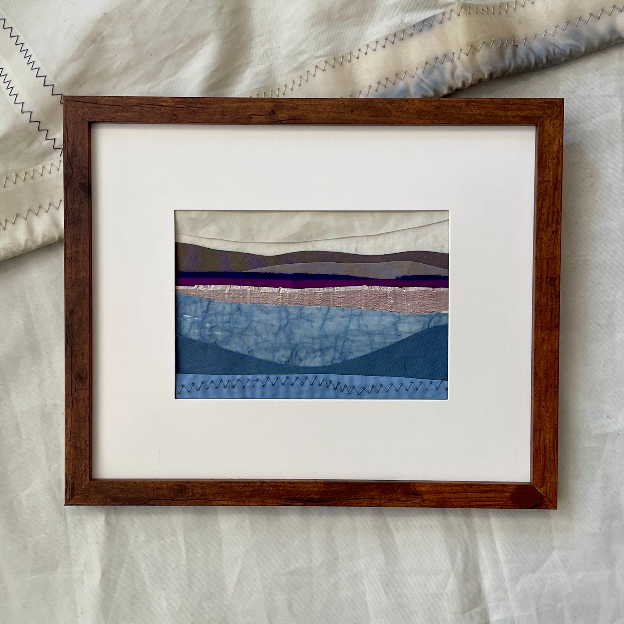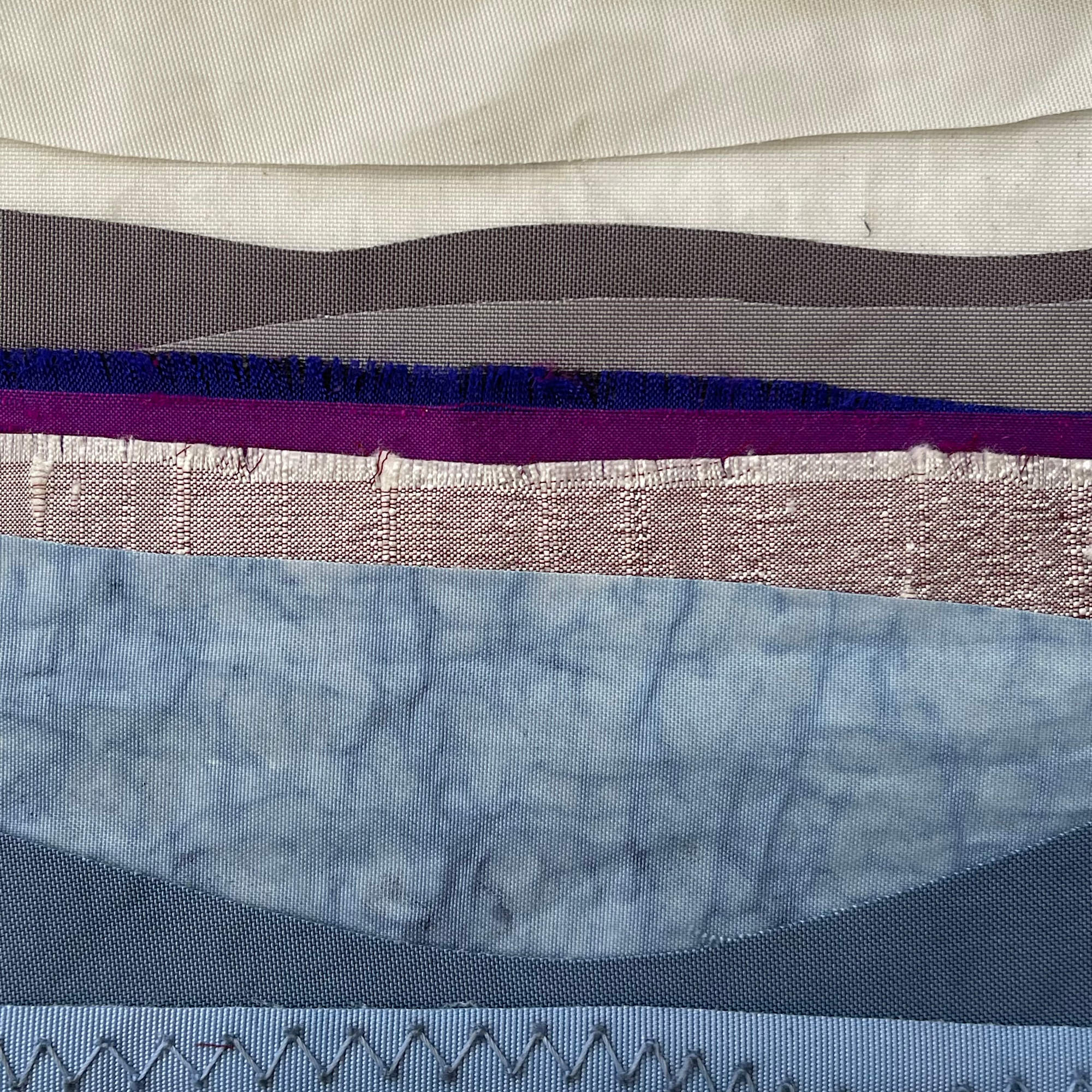 Repurposed "retired" nautical sail and dupioni silk mixed media art.