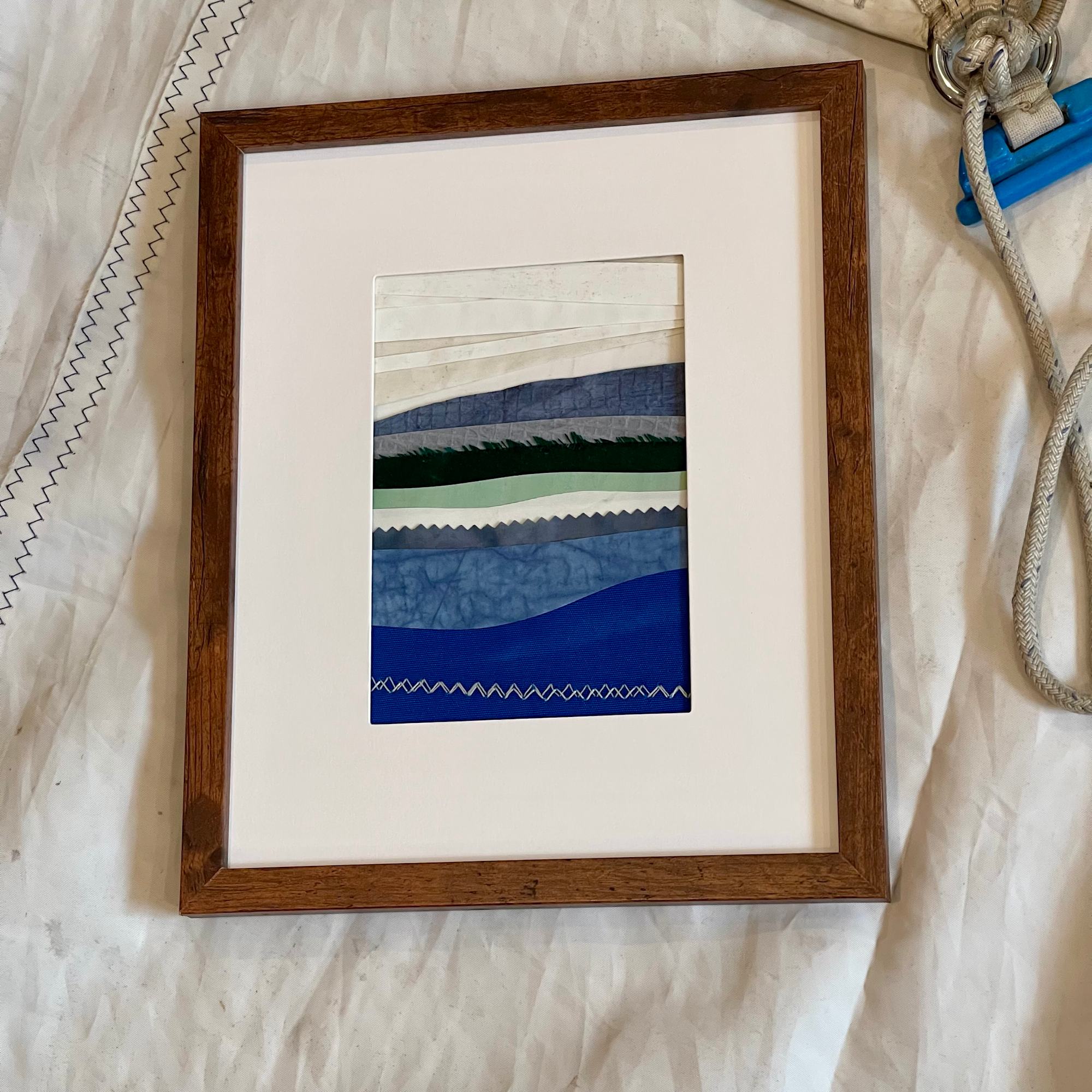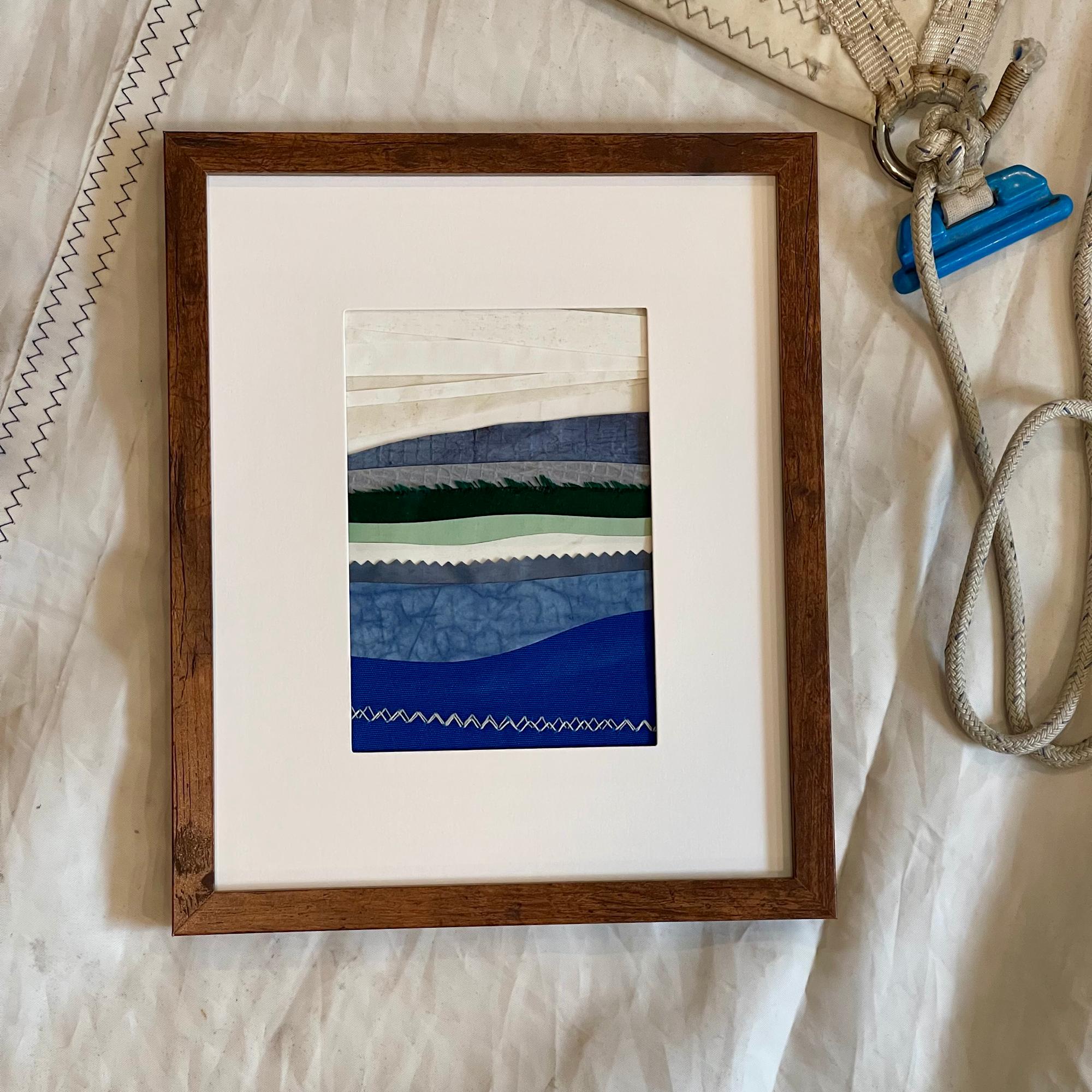 Repurposed "retired" nautical sail, aviation chart and dupioni silk mixed media art.
