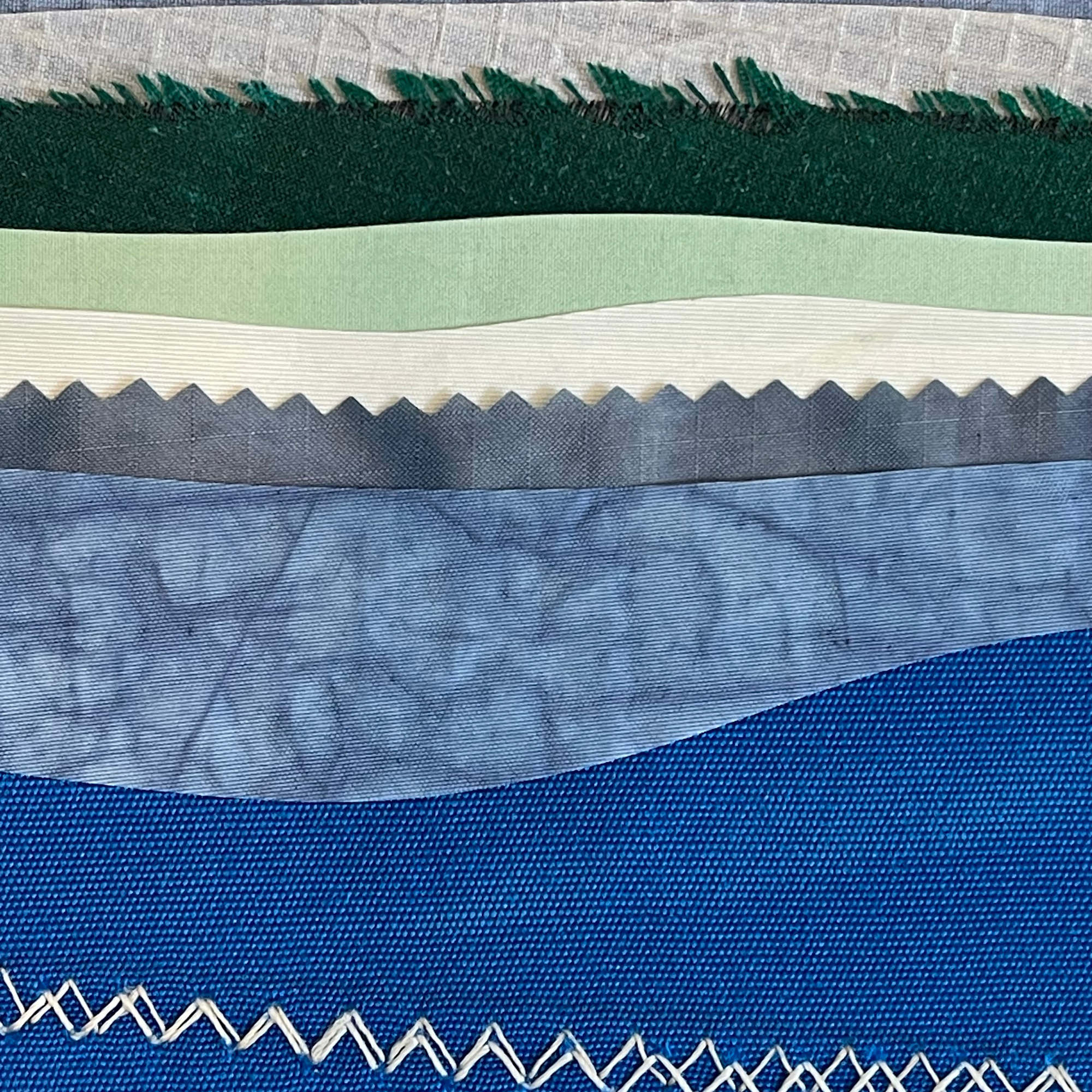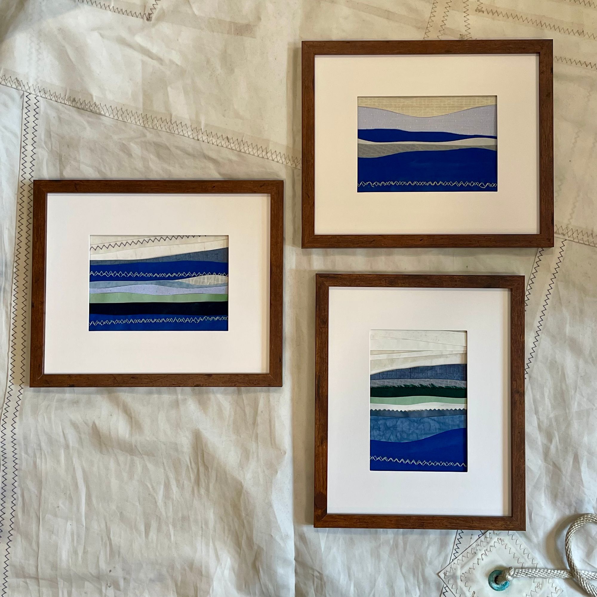 Special attributes included might be: retired nautical sails, marine cloths, vintage dupioni silks, aviation topographic charts, watercolor paints, fabric dyes, and more.