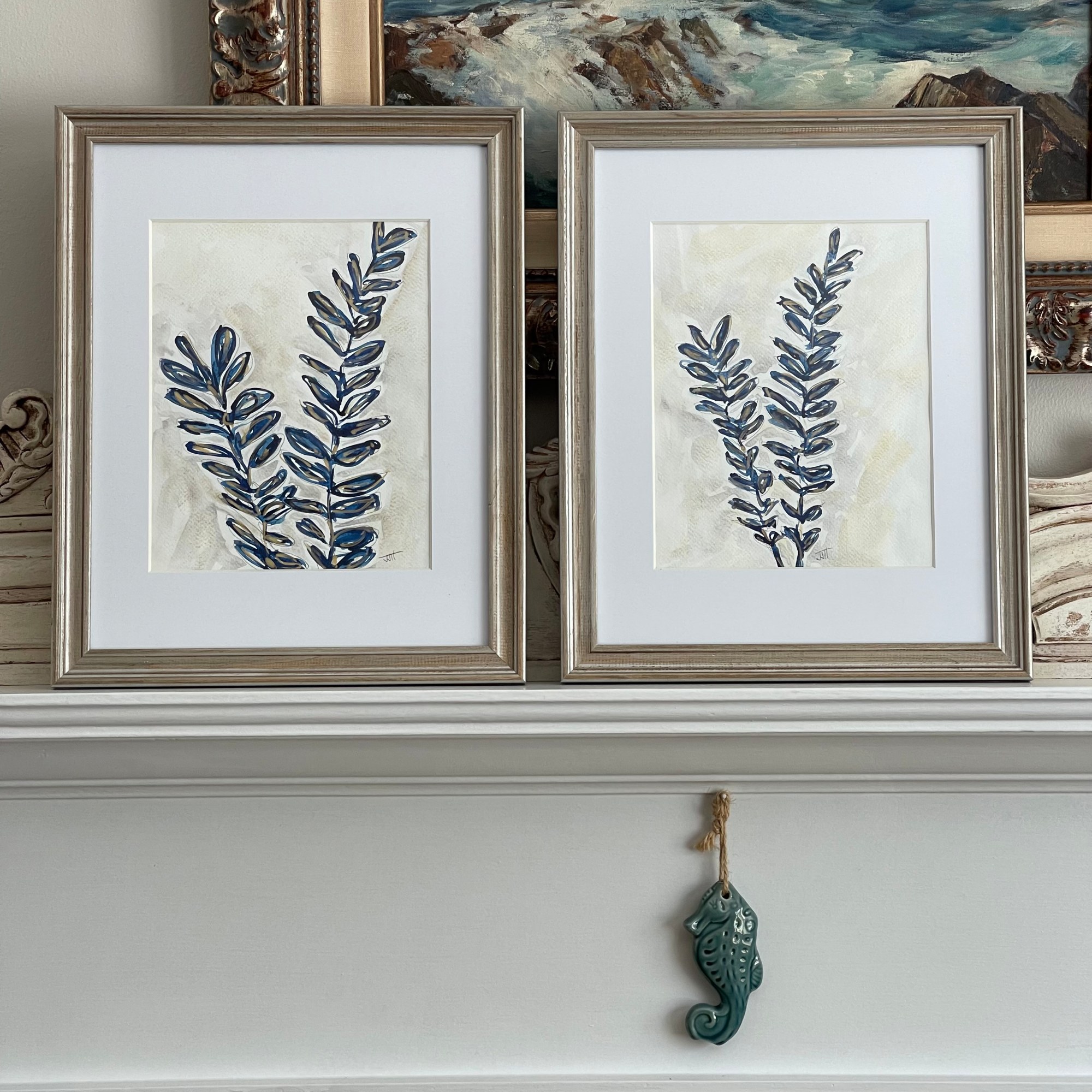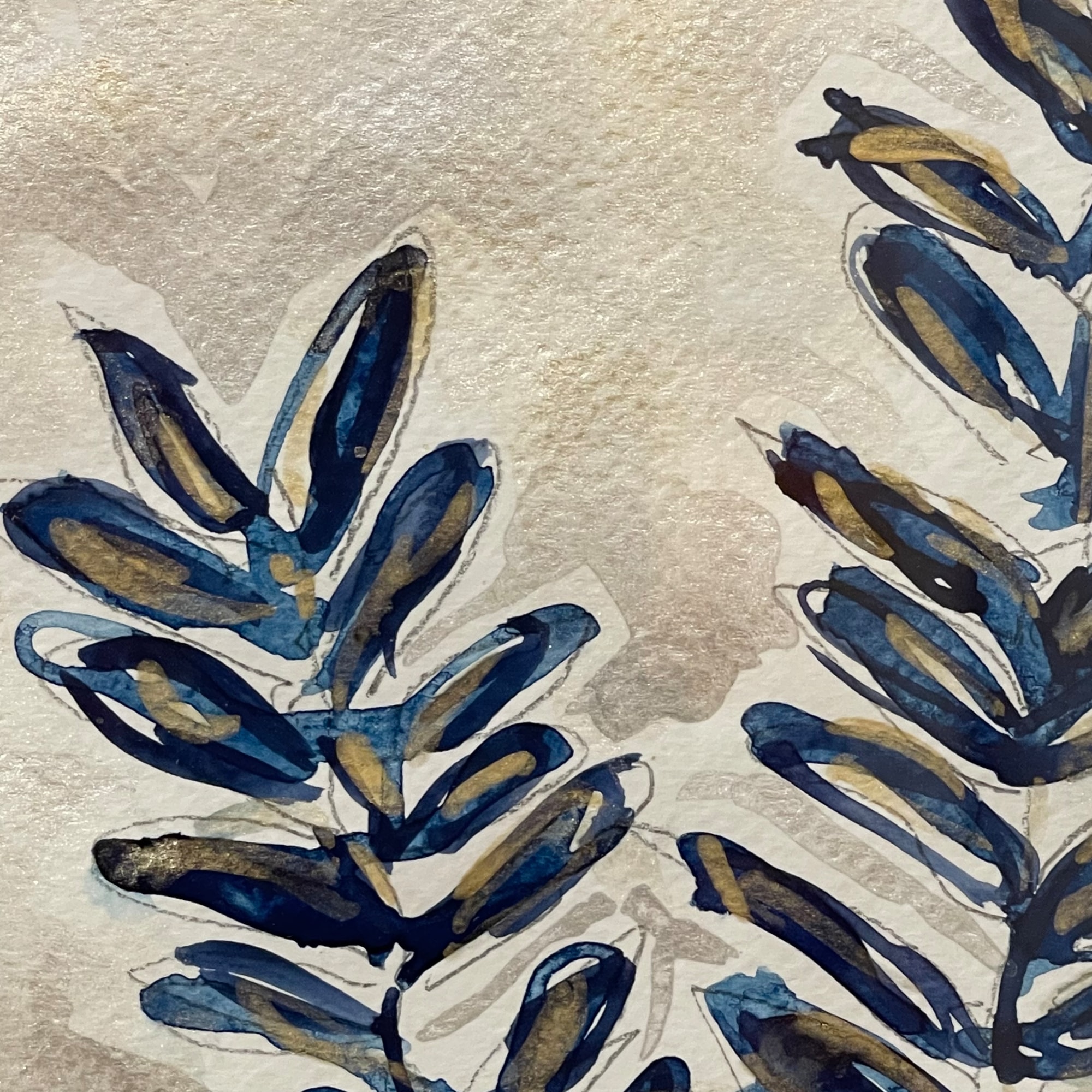 Shimmery metallic gold under and over painting with a deep blue palette.