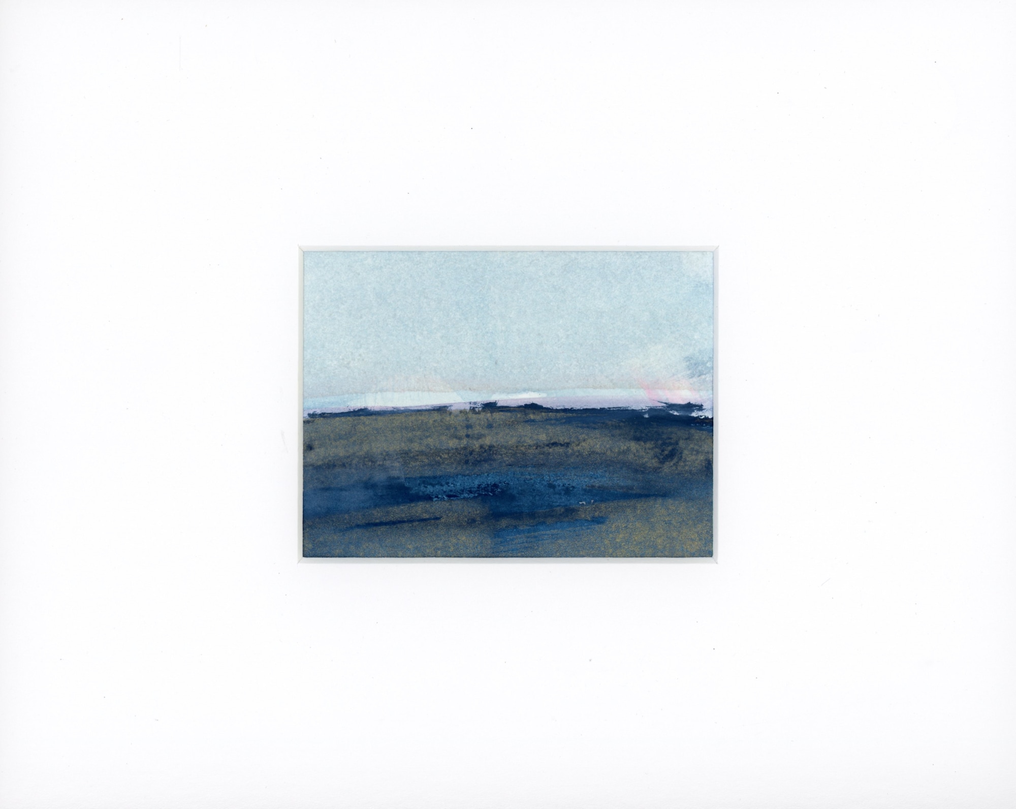 This coastal landscape watercolor is professionally finished with a delicate beaded, burnished gold frame. The sea and sky is subtle yet dramatic and intriguing.
