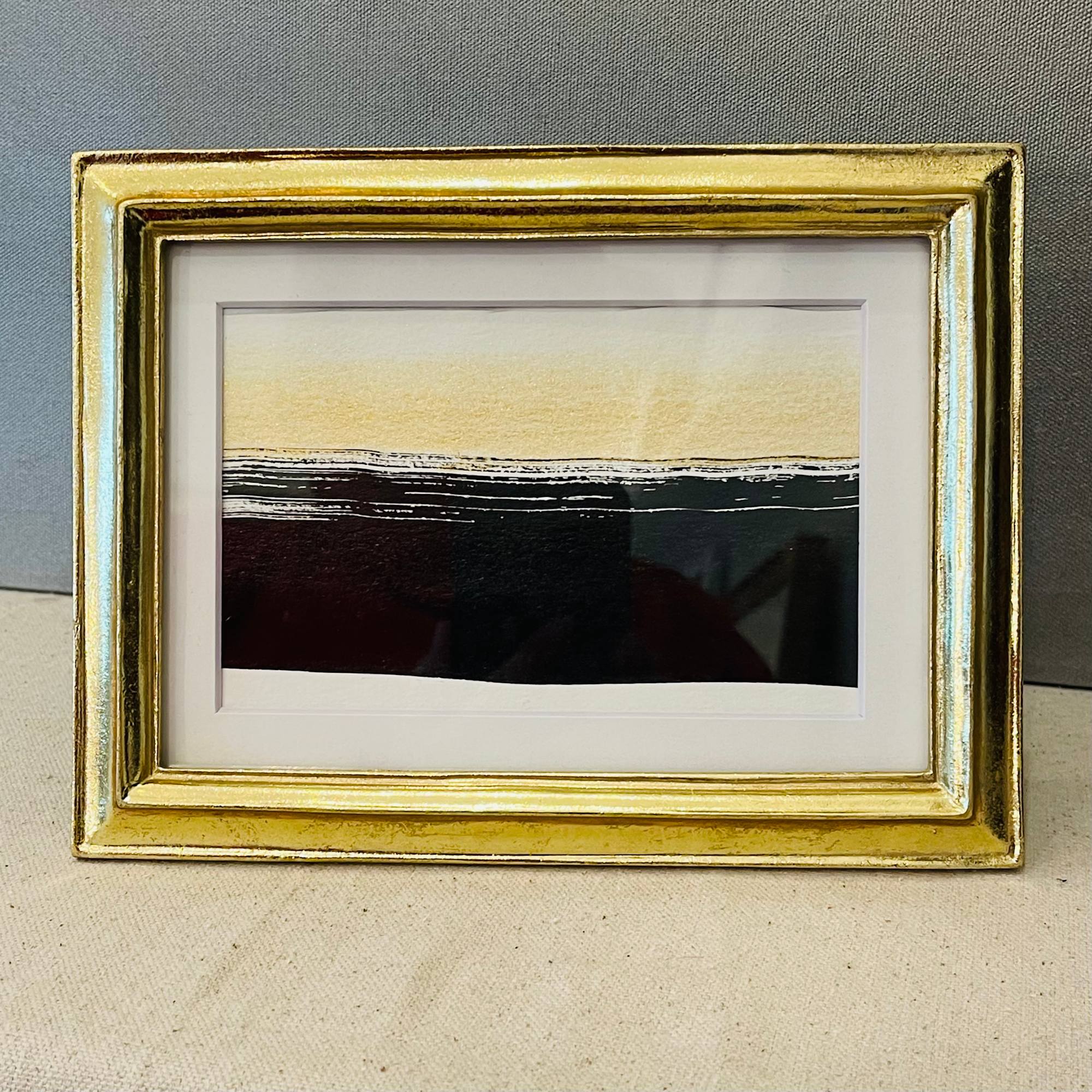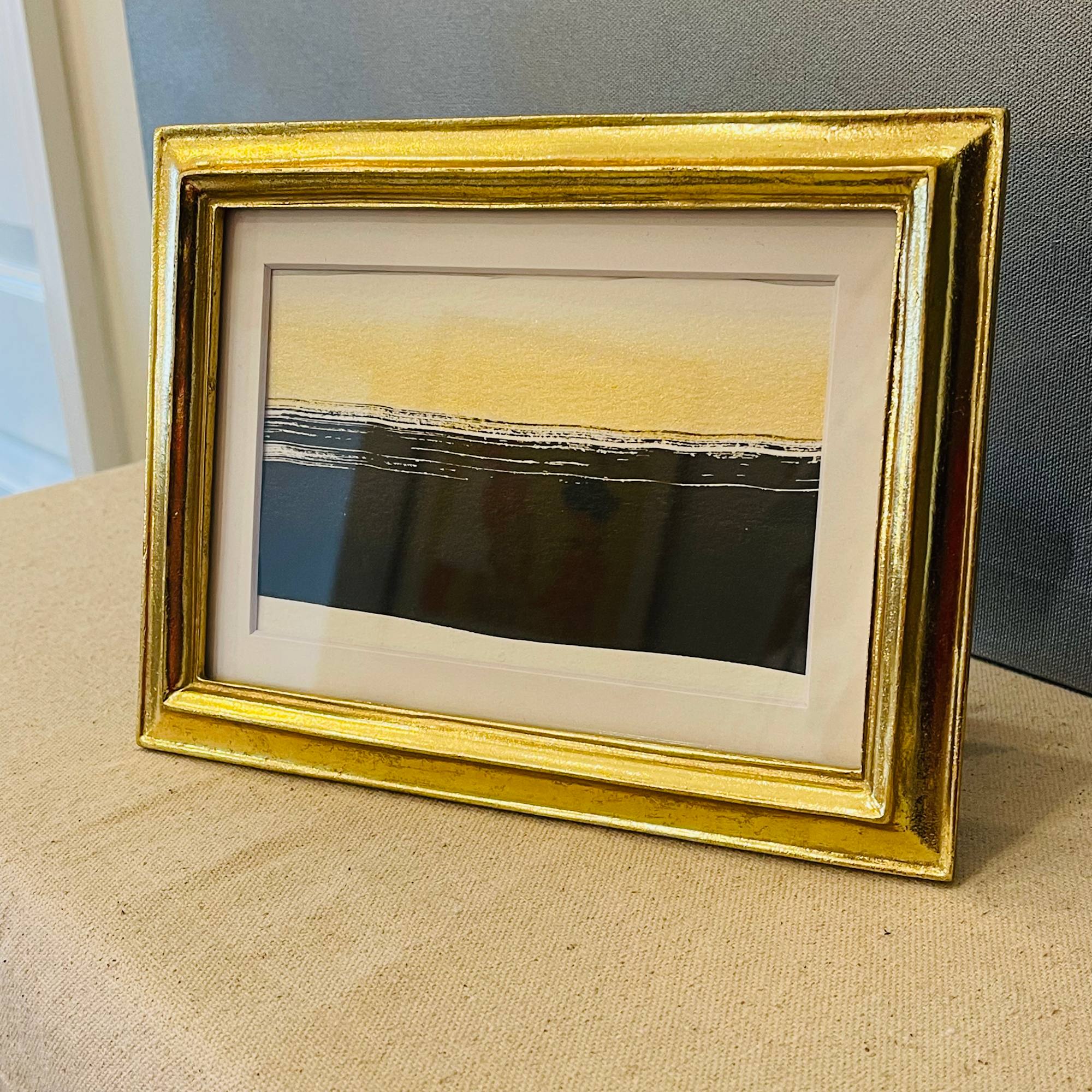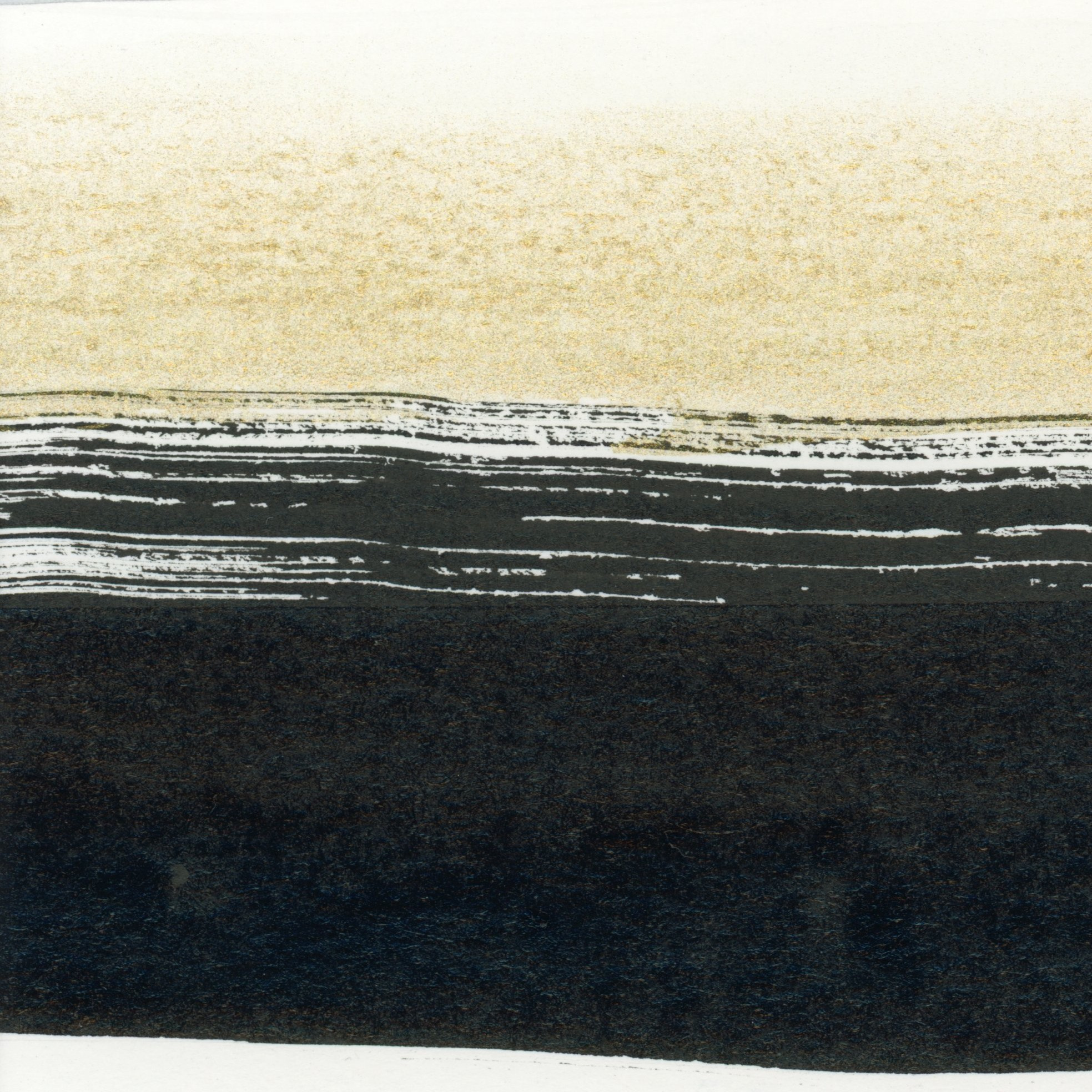 This sumi ink and gold watercolor wash artwork reminds me of the ocean. A gentle rolling tide silhouette calms the eye.