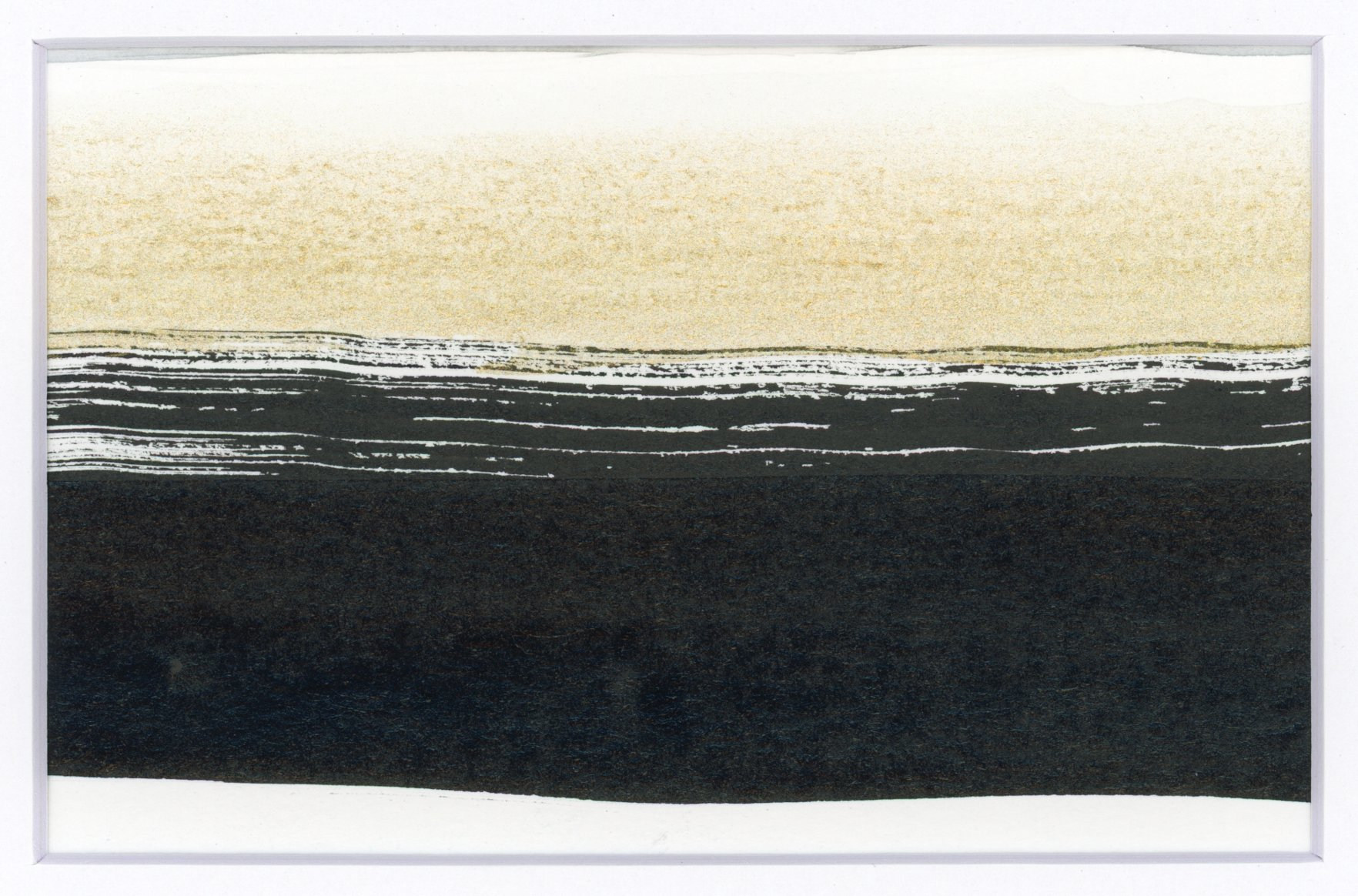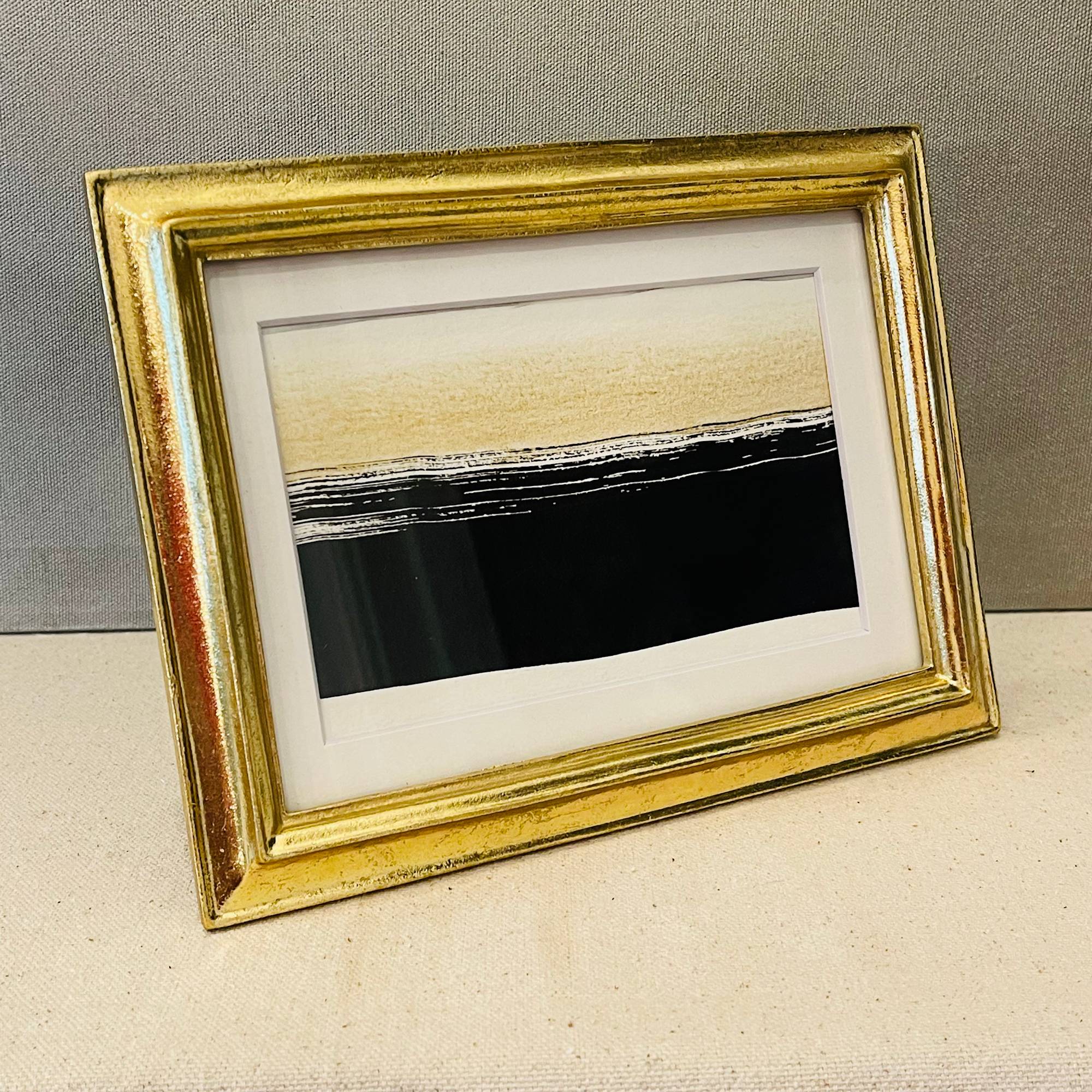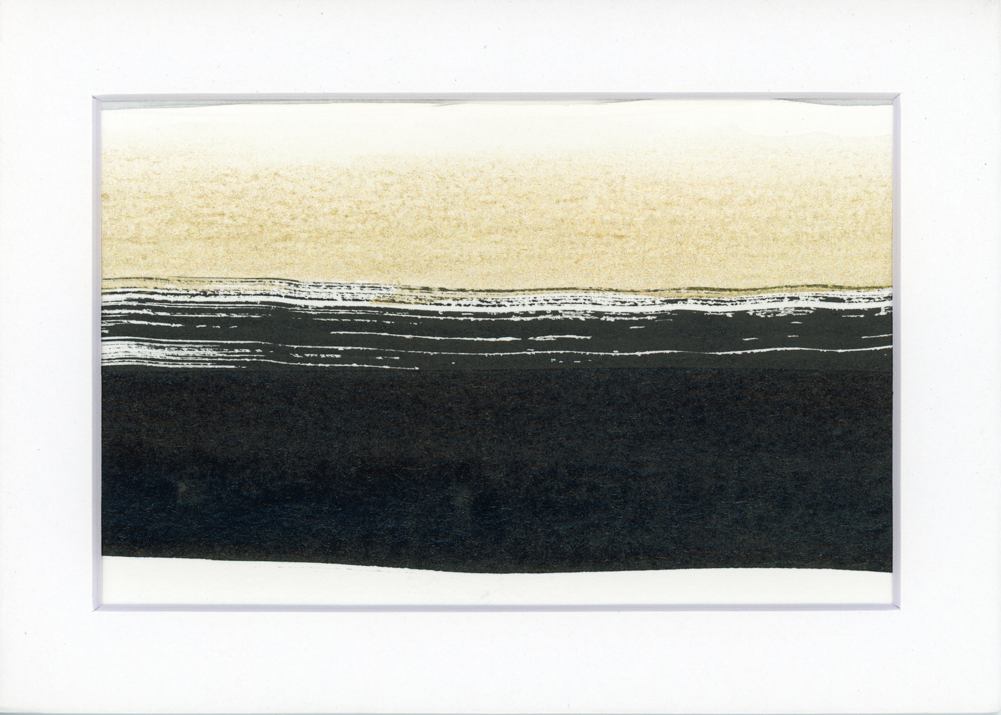 This sumi ink and gold watercolor wash artwork reminds me of the ocean. A gentle rolling tide silhouette calms the eye.