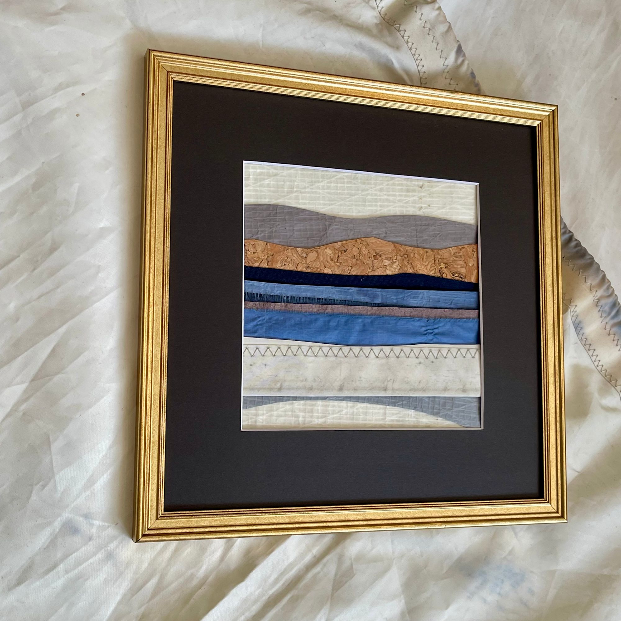 Special attributes included might be: retired nautical sails, marine cloths, vintage dupioni silks, aviation topographic charts, watercolor paints, fabric dyes, and more.