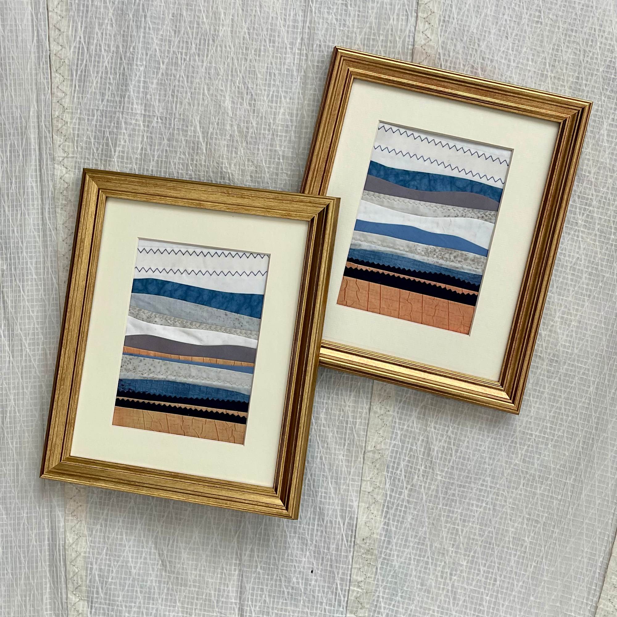 Special attributes included might be: retired nautical sails, marine cloths, vintage dupioni silks, aviation topographic charts, watercolor paints, fabric dyes, and more.