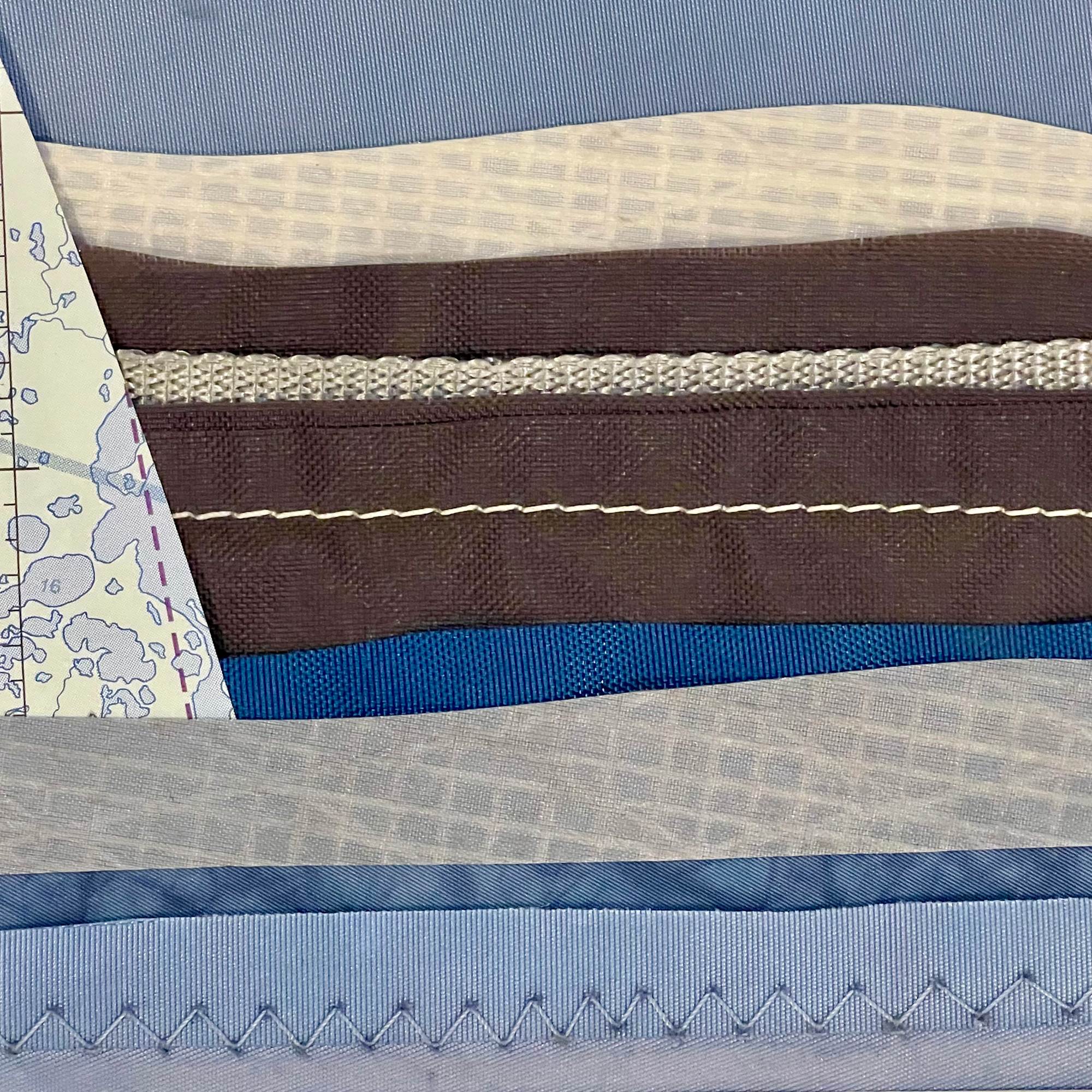 Reclaimed-Repurposed-Reimagined Nautical Sails, and Marine Cloth with a vintage aviation chart - mixed media art