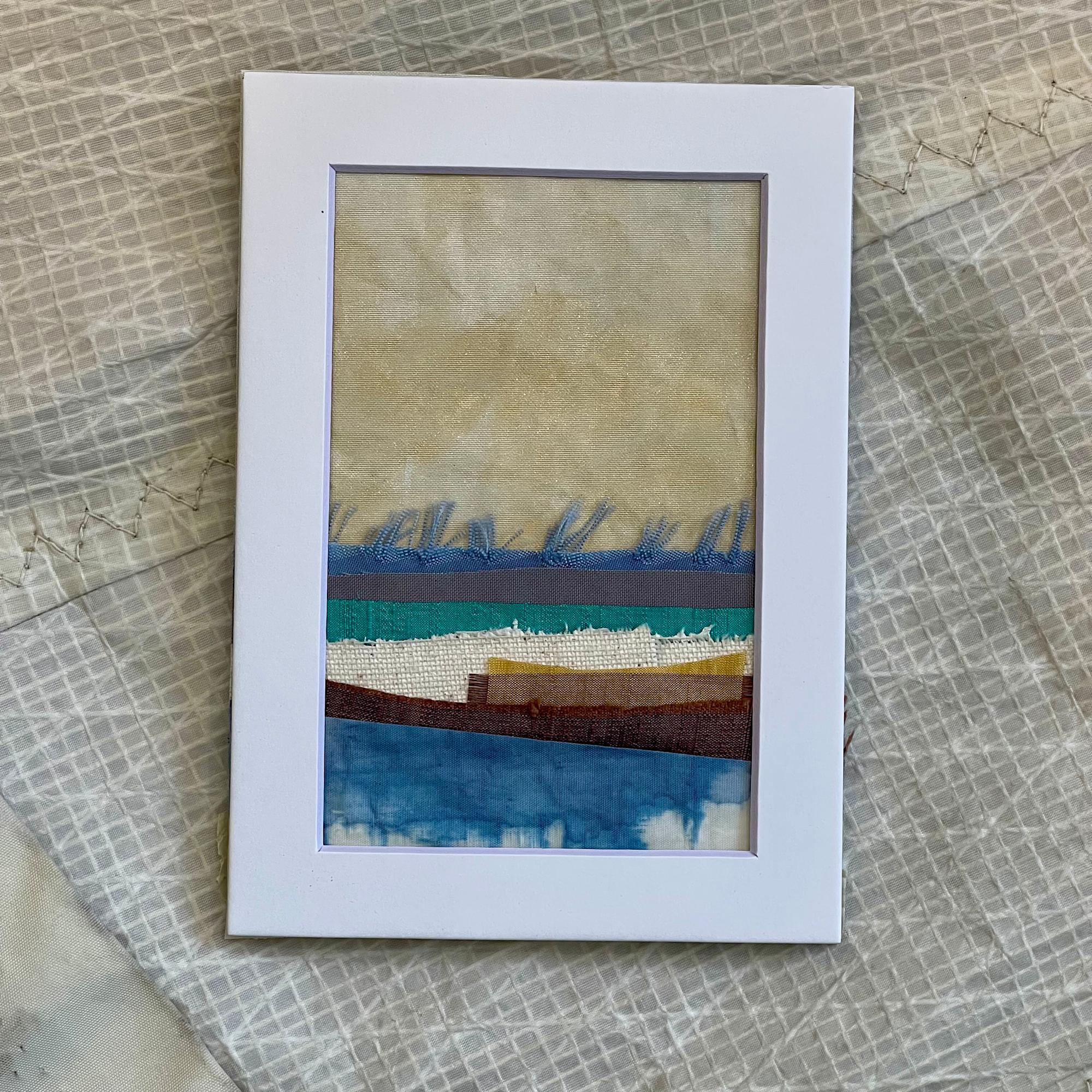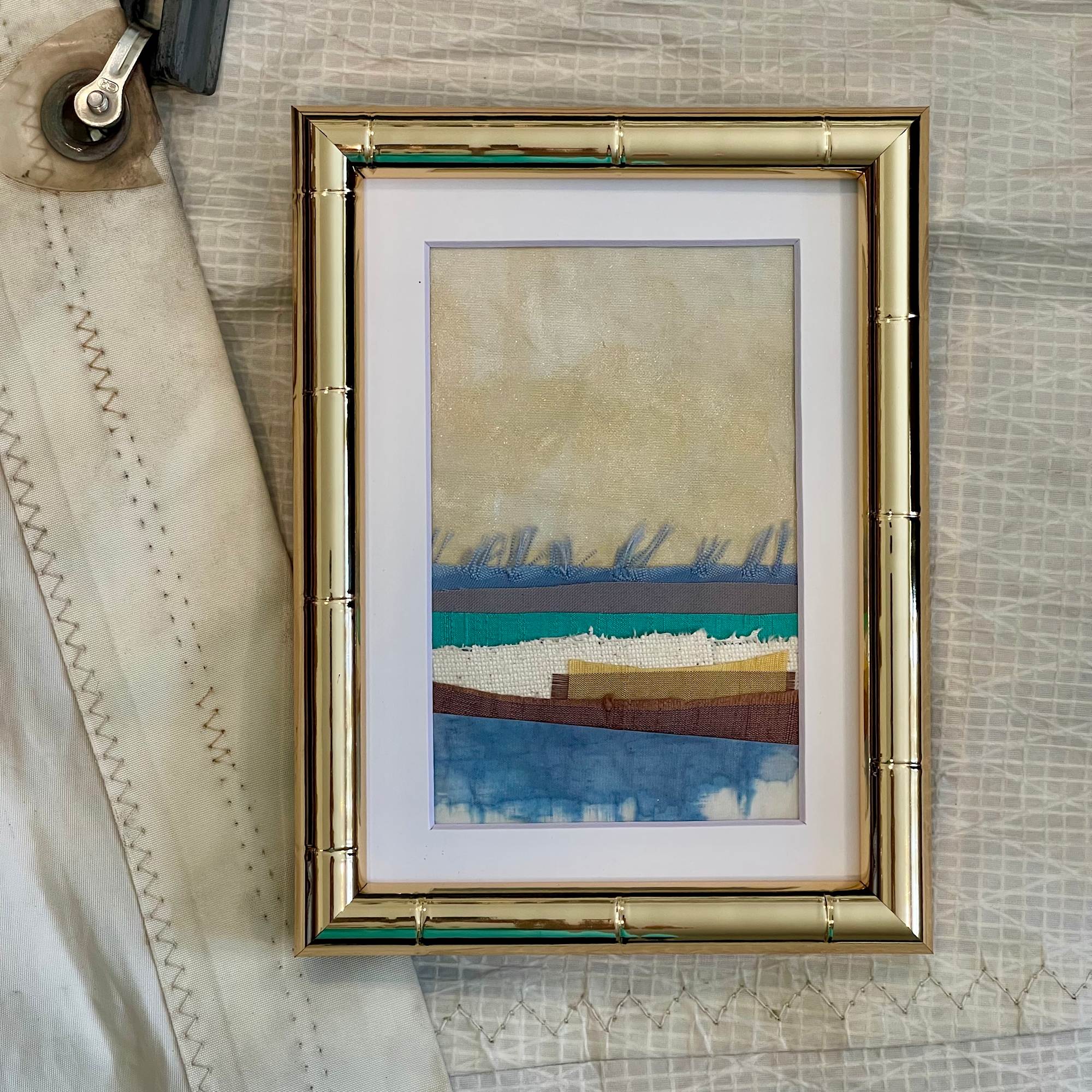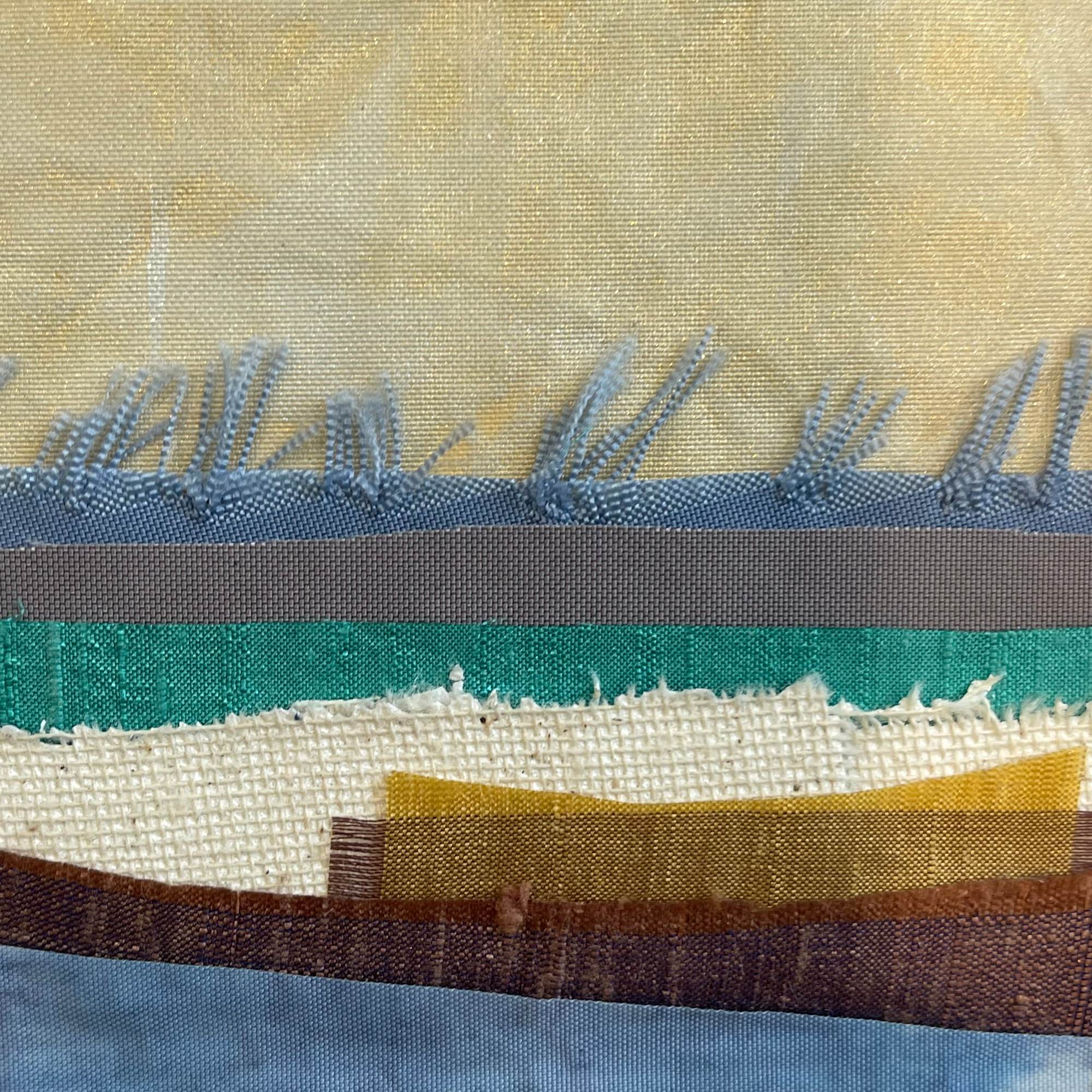Repurposed "retired" nautical sail, and vintage dupioni silk mixed media art.